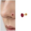 Elevate your everyday look with a touch of timeless elegance. This exquisite nose stud features a brilliant, lab-created ruby in a vibrant pigeon-blood red, expertly set in a classic four-prong 14K yellow gold mount. Designed for both beauty and comfort, it utilizes a professional flat-back labret design, ensuring a flush fit against the skin that won’t snag on clothes or irritate the inside of your nose.