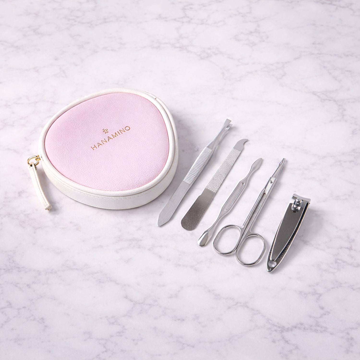 Includes nail cutter, scissors, tweezers, nail file, and cuticle tool