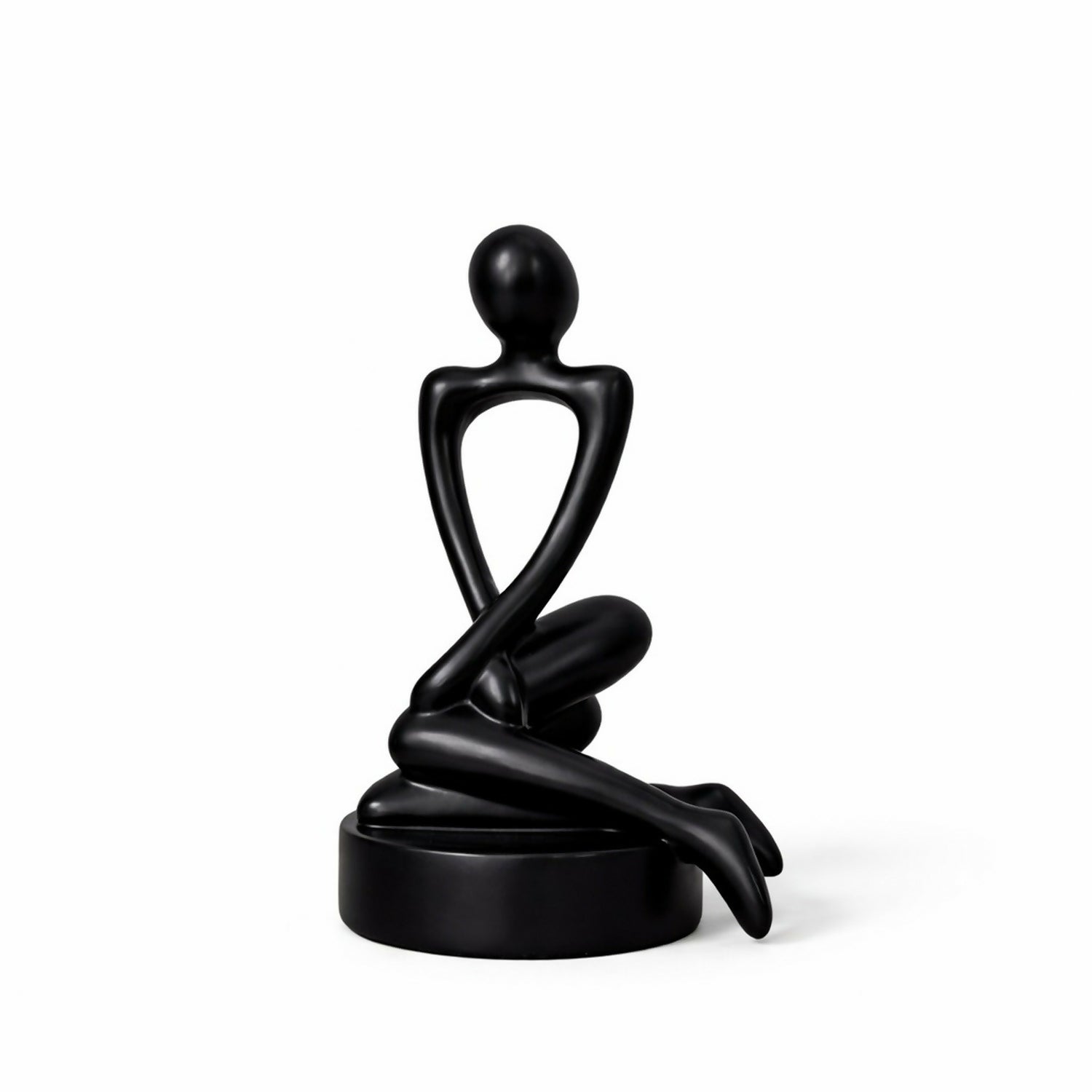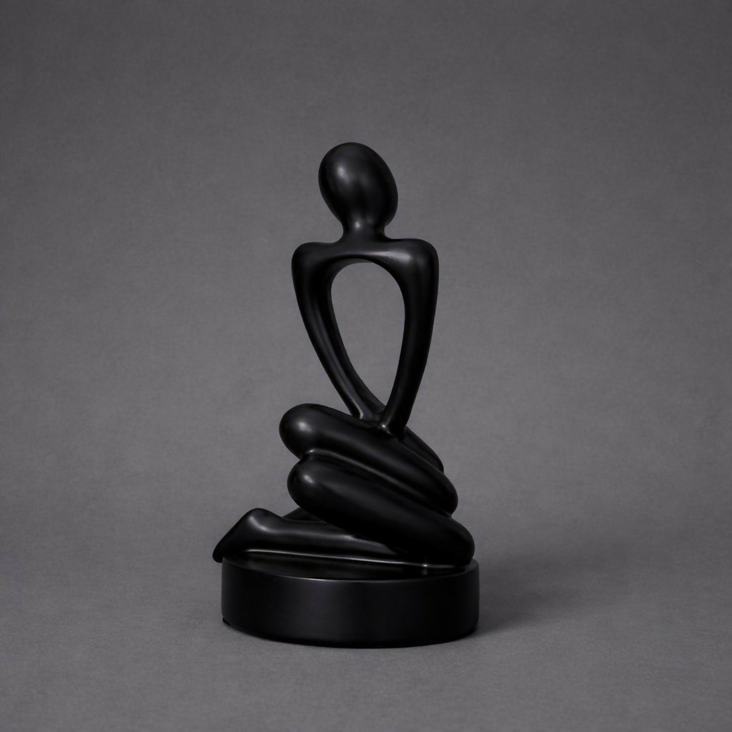 Elevate your interior décor with this modern abstract sitting man sculpture in an elegant black finish. Designed with smooth curves and a thoughtful pose, this artistic figurine represents calm, reflection, and creativity. Its minimalist style blends effortlessly with contemporary, luxury, and modern interiors. Perfect for display on shelves, coffee tables, office desks, or study rooms, this sculpture also makes a stylish gift for art lovers and décor enthusiasts.