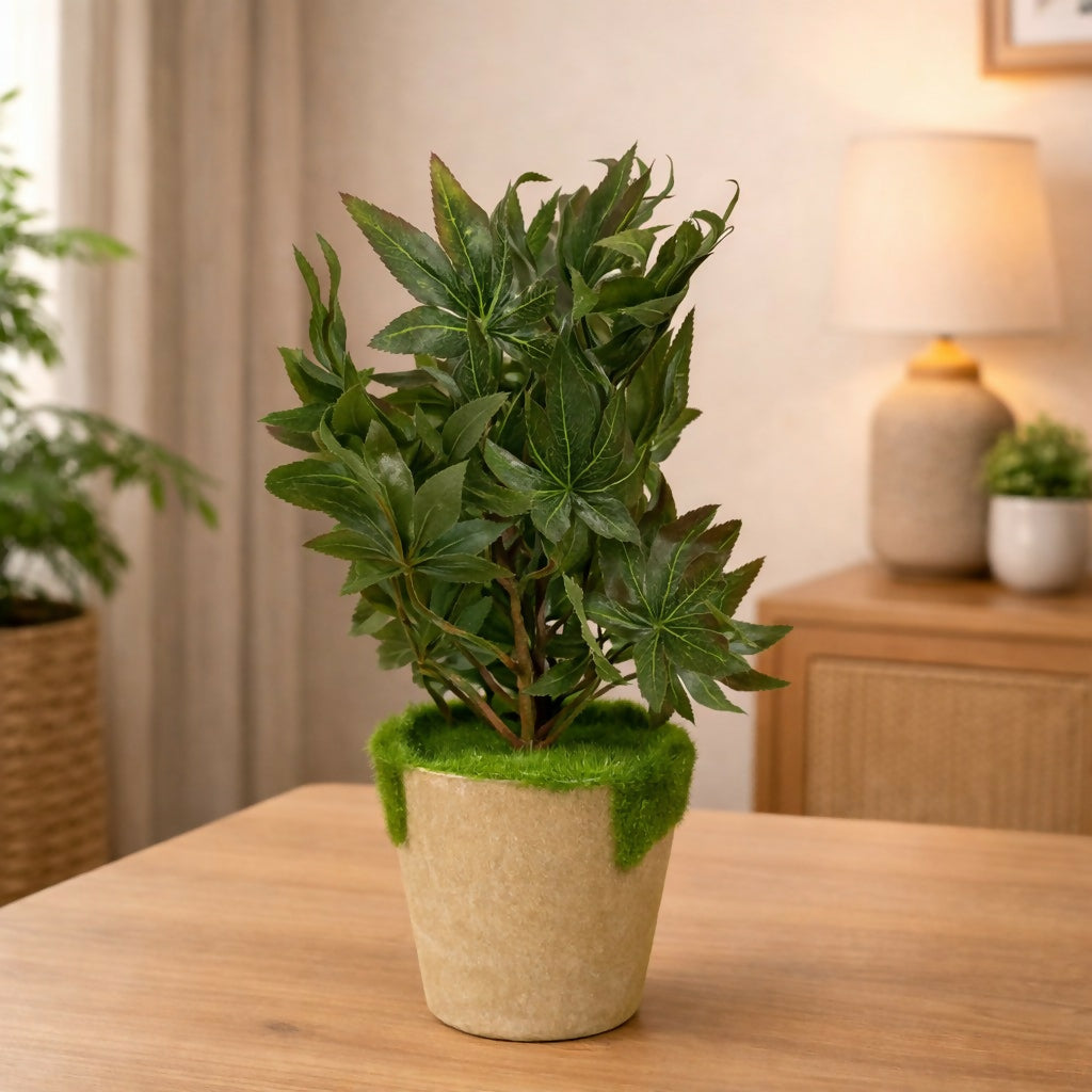 Add a warm seasonal touch to your interiors with this artificial maple leaf plant in a stylish decorative pot. Designed with detailed foliage and natural-looking stems, this arrangement brings vibrant charm to your home or office without any maintenance. The compact pot with grass-style top finish enhances its realistic appearance and makes it suitable for modern décor settings.