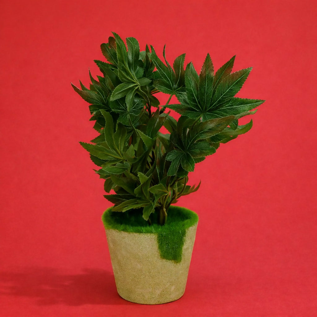 artificial maple plant, fake leaf plant, tabletop decorative plant, indoor artificial plant, home decor plant, office desk decor, decorative pot plant, maintenance free plant, shelf decor plant, artificial foliage decor, gift plant, modern home decor accessory