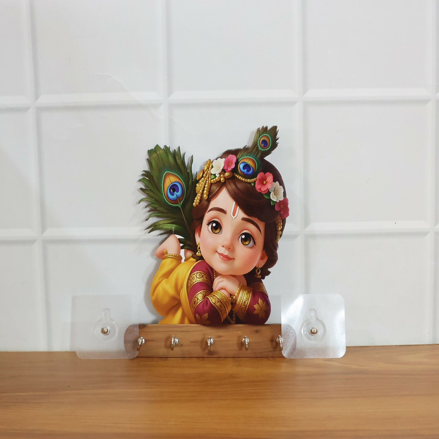 Baby Krishna Wall Key Holder with 5 Hooks – Self Adhesive