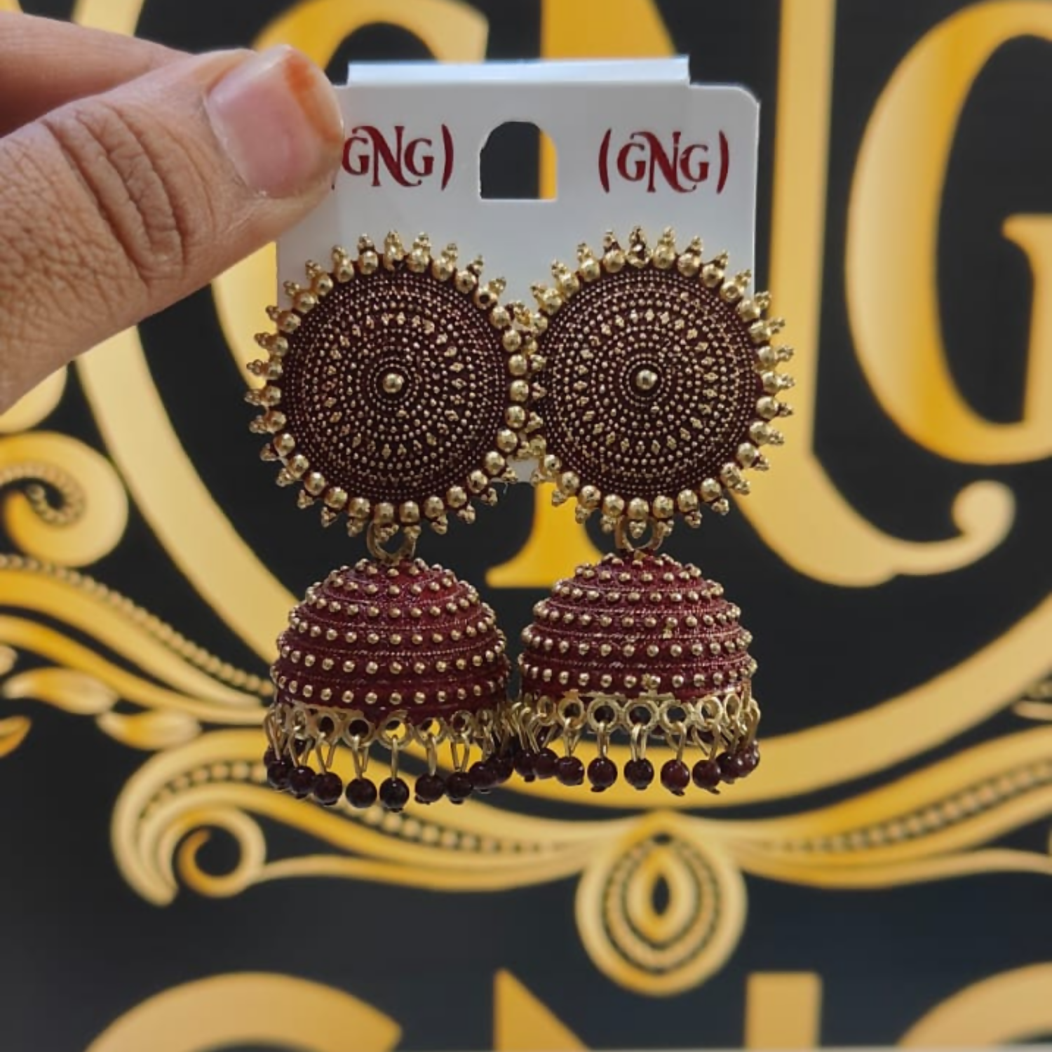 Be the first to review “beautiful elegant oxidised jhumka earrings in maroon colour” Cancel reply