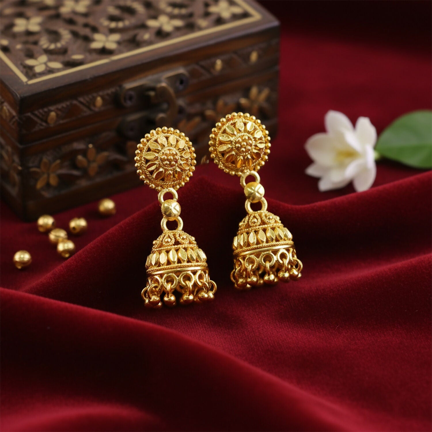 Gold Plated Floral Jhumka Earrings for Women – Traditional Ethnic Party Wear Jewelry
