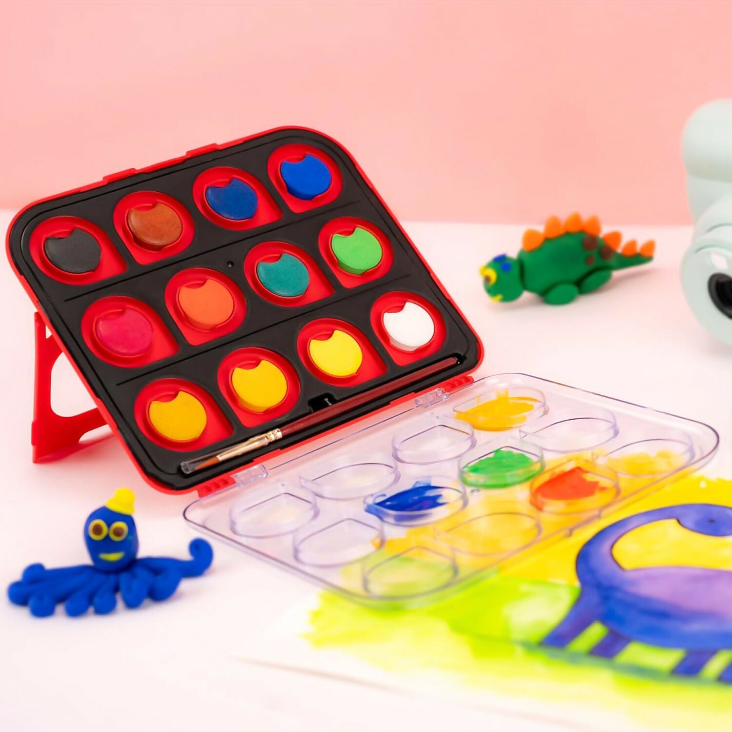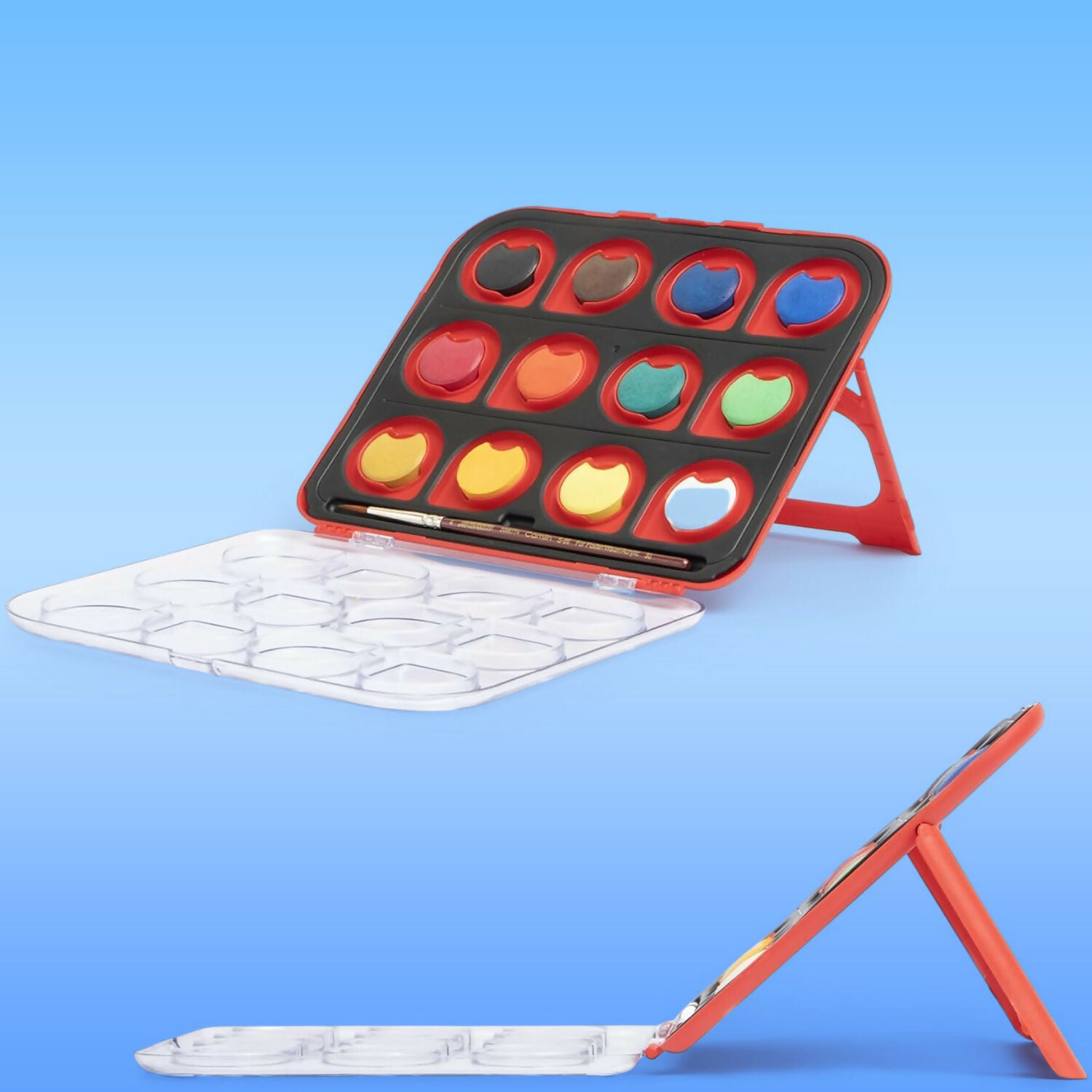 The Camel ColorPad is a vibrant watercolor paint set designed for young artists. It features 12 different shades, perfect for unleashing creativity and making art fun. Ideal for children, it encourages imaginative play while improving fine motor skills and color recognition. The paints are easy to use, making it a great addition to any child’s art supplies. The included stand allows for a stable painting surface, and the compact design makes it travel-friendly.
