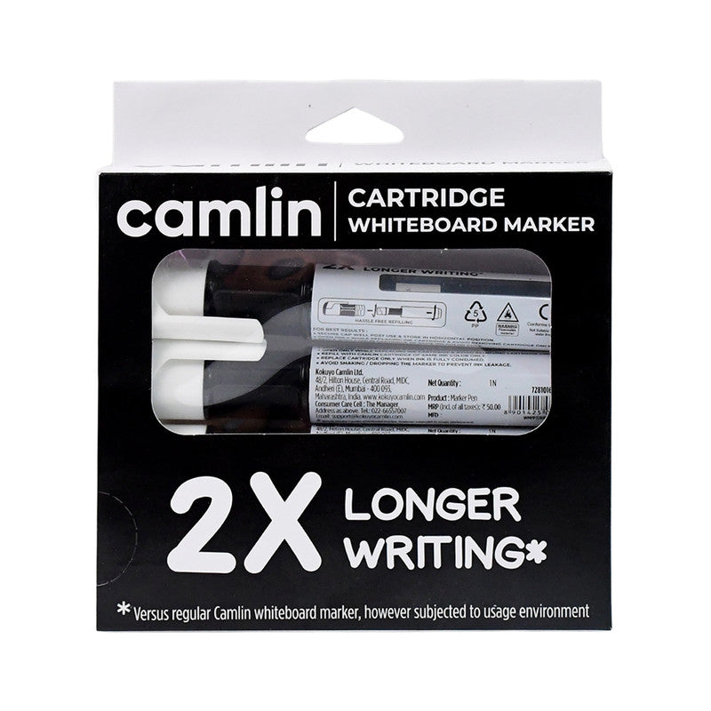 The Camlin Cartridge Whiteboard Marker in Black color delivers bold, clear, and professional-quality writing with the added benefit of a refillable cartridge system. This pack of 5 markers ensures 2X longer writing performance compared to regular whiteboard markers, making them highly efficient and cost-effective for frequent users. The quick-drying ink provides crisp markings that are smudge-free and easy to erase, leaving no ghost marks behind. Designed with a durable tip for smooth and consistent ink flow, these markers are perfect for classrooms, offices, training centers, and presentations. The cartridge-based refilling system is eco-friendly and reduces wastage by eliminating the need to dispose of the entire marker. Combining clarity, durability, and convenience, the Camlin Cartridge Whiteboard Markers in Black are a reliable choice for everyday professional and educational use.