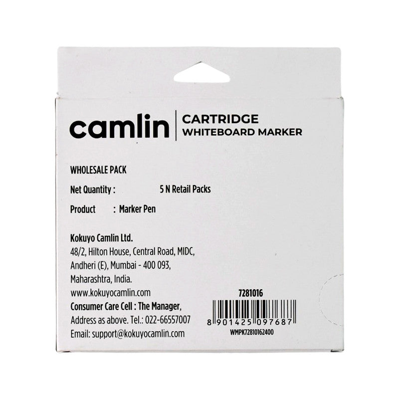 Camlin Cartridge Whiteboard Marker Long-Lasting Black Refillable Markers (5pc)