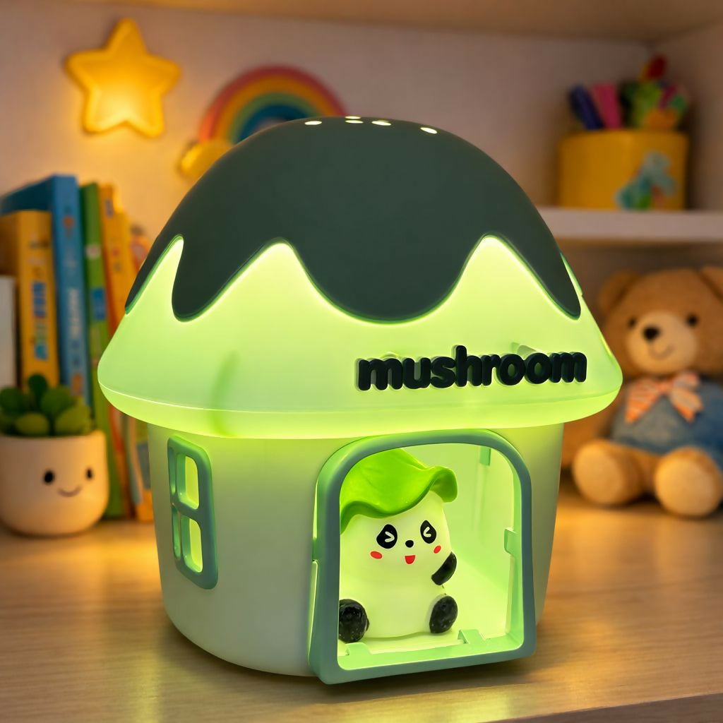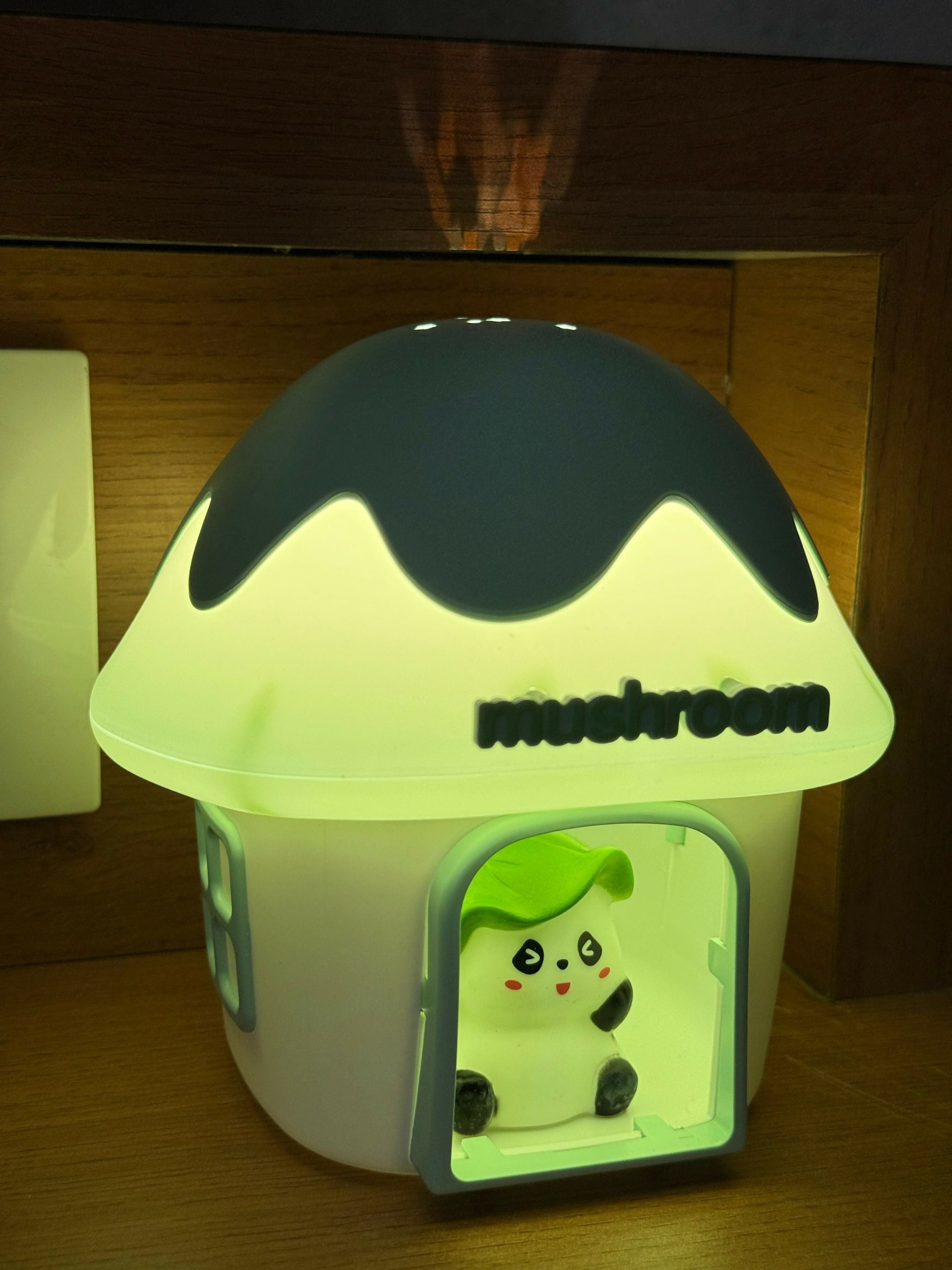 • Cute Mushroom House Design – Adorable cartoon-style mushroom lamp with a small character inside.