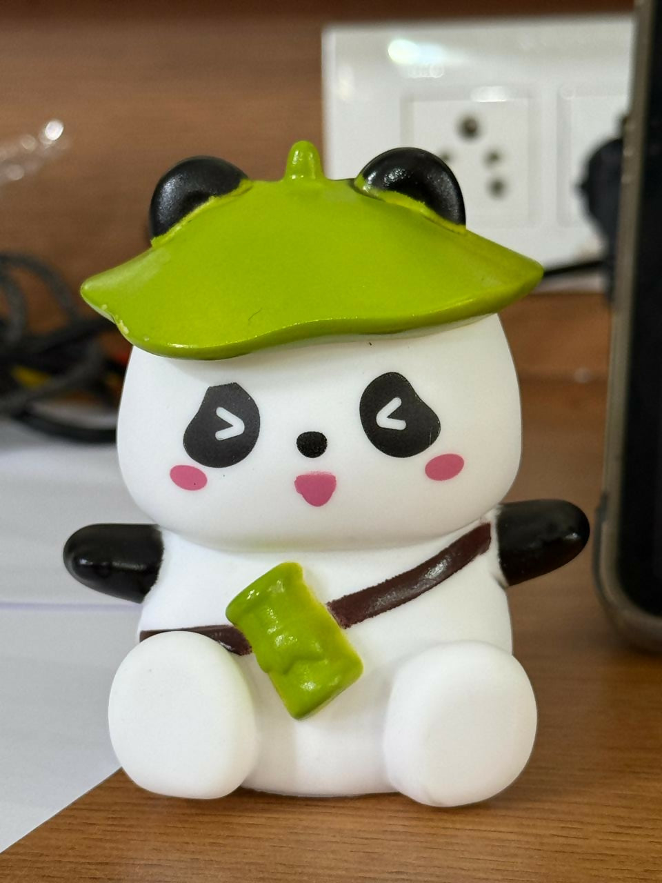 • Cute Panda Design – Adorable panda figure with bamboo hat for playful décor