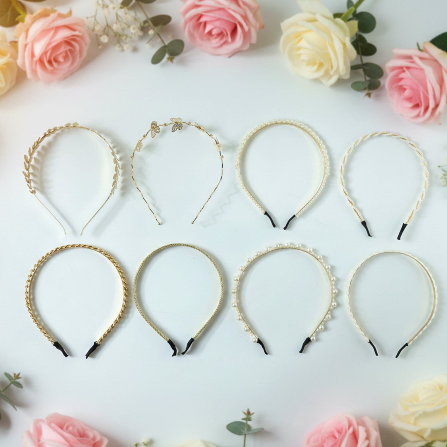 Enhance your hairstyle collection with this elegant 8 Pcs Designer Hair Band Set crafted for women and girls who love stylish and graceful accessories. This premium headband combo includes beautifully designed patterns such as pearl-studded bands, floral motifs, leaf designs, and textured metallic finishes that complement both traditional and modern outfits. Each hair band is lightweight, comfortable, and designed to hold hair securely without causing discomfort. Perfect for adding a touch of charm to everyday looks or special occasions, this versatile set suits casual outings, parties, weddings, festive celebrations, and office wear. A must-have accessory collection for fashion lovers who enjoy effortless styling.