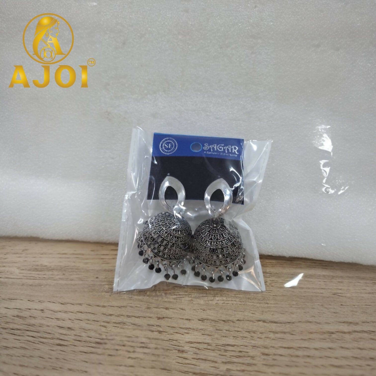 Add timeless elegance to your ethnic collection with these premium oxidised silver jhumka earrings. Featuring a stylish teardrop stud and intricately engraved dome with delicate danglers, these earrings are perfect for festive occasions, weddings, and traditional wear.