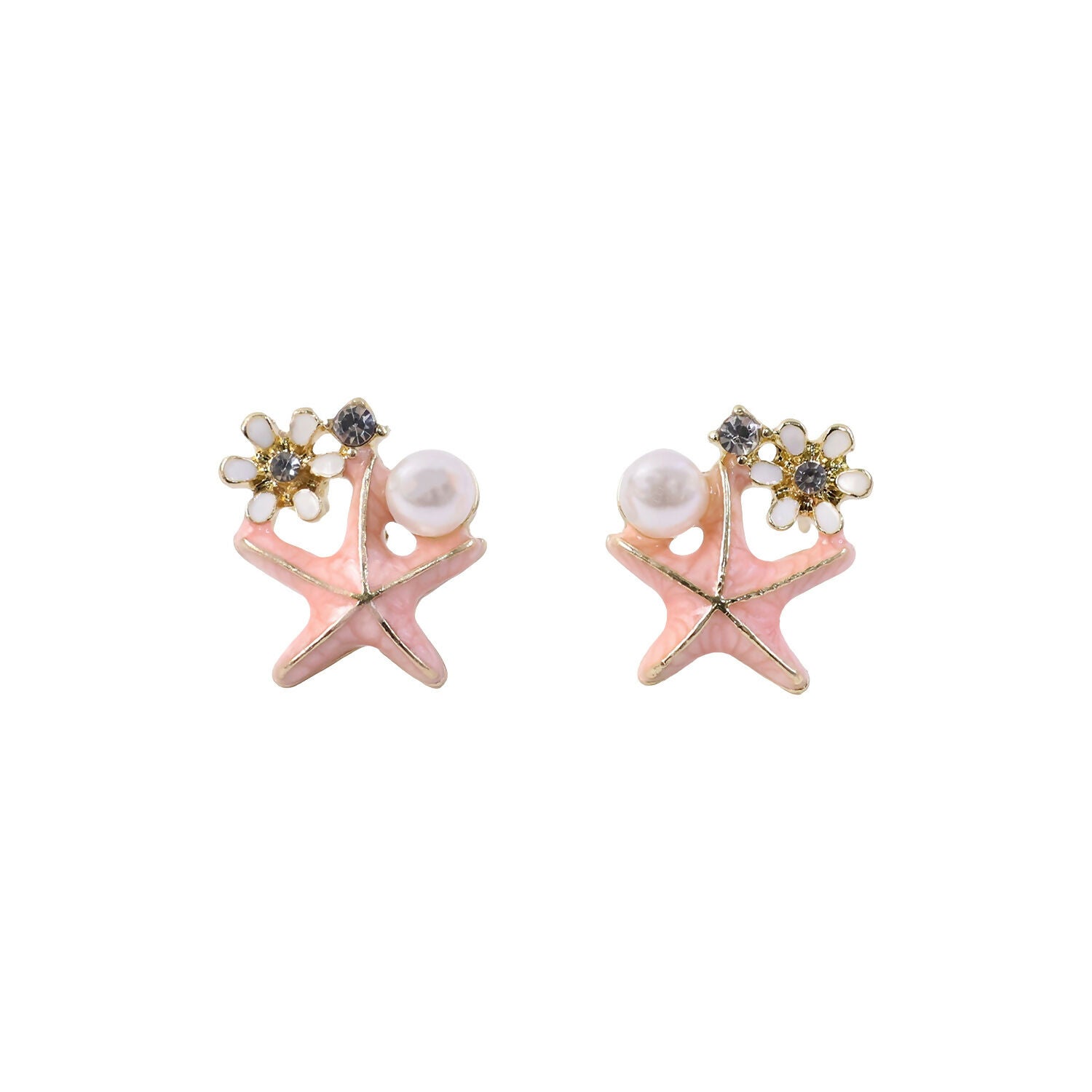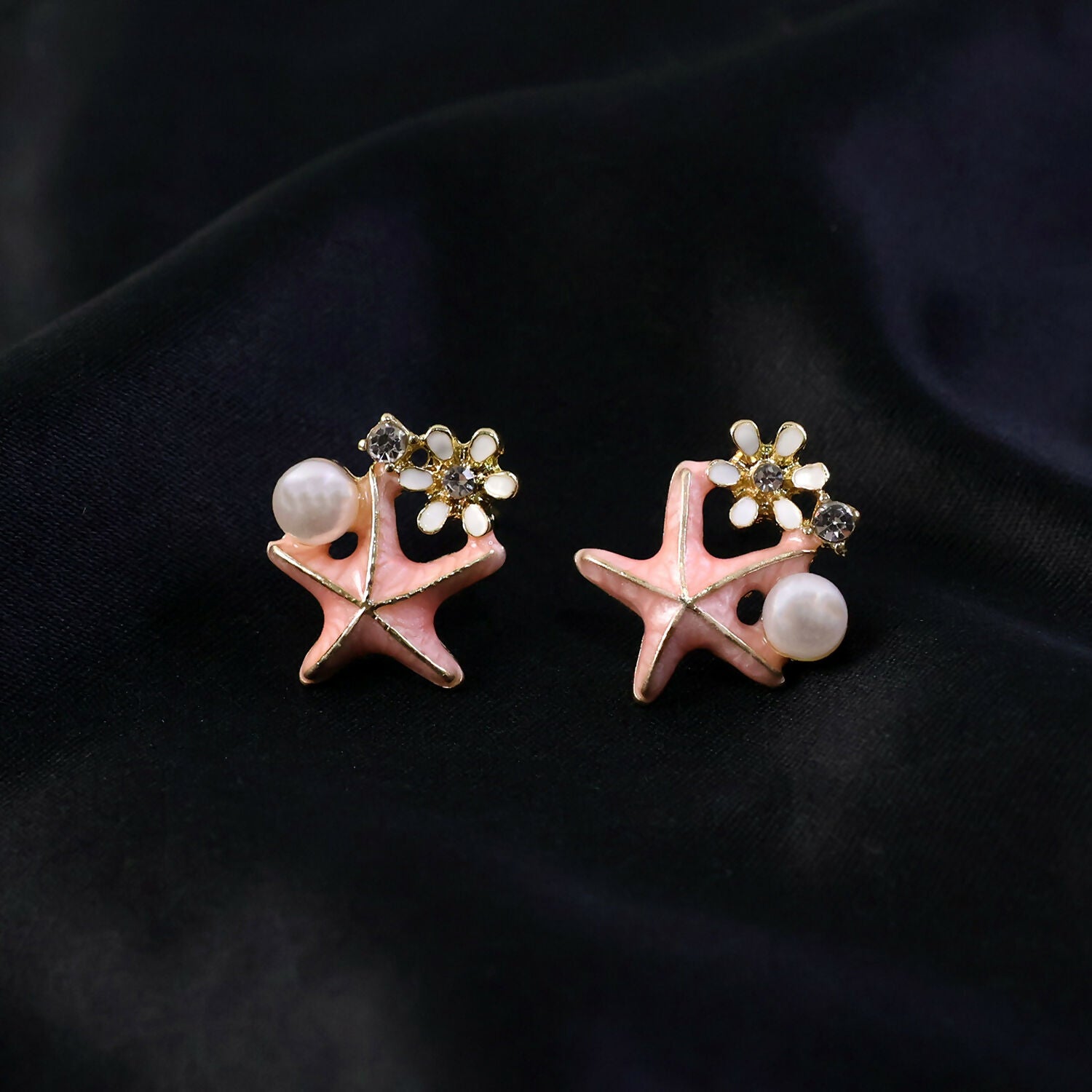 Elegant Pink Starfish Pearl Stud Earrings for Women For Girls 81.00 Save:67.00(45%)