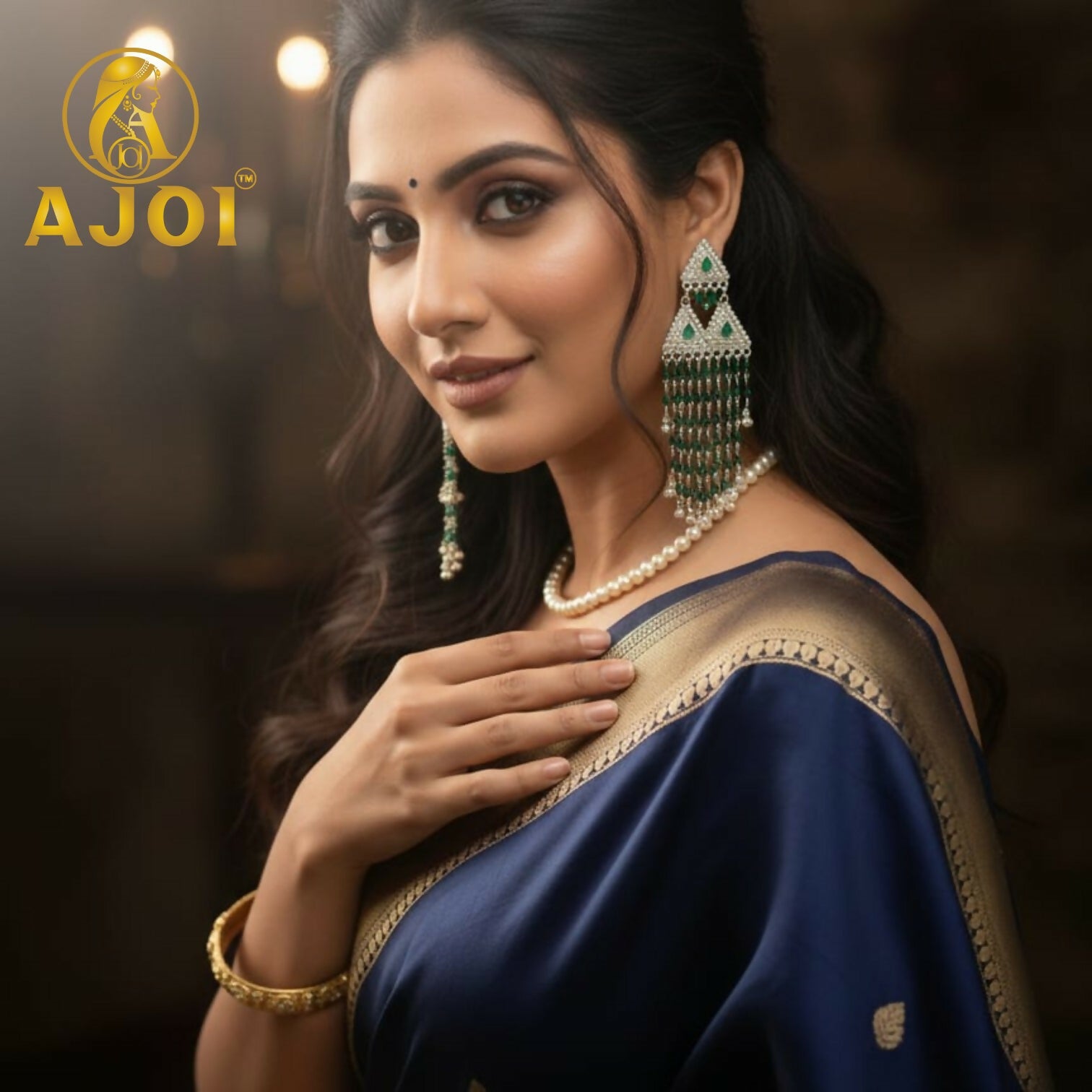 Make a bold ethnic statement with these premium silver-tone triangle earrings, adorned with rich green stones and elegant layered bead drops. A perfect blend of tradition and royal charm for weddings and festive celebrations.