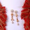 Be the first to review “Floral Crystal Drop Earrings with Gold-Tone Chain Tassels” Cancel reply