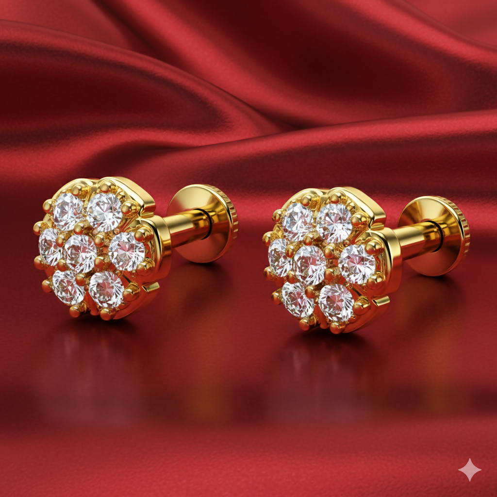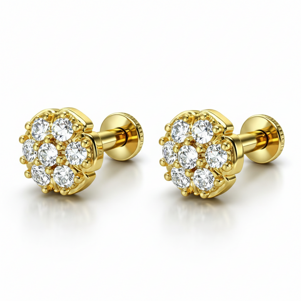 Elevate your everyday style with these stunning Diamond Cluster Flat Back Stud Earrings. Designed for both elegance and comfort, these earrings feature a brilliant floral-inspired cluster of sparkling cubic zirconia stones set in high-quality gold plating.