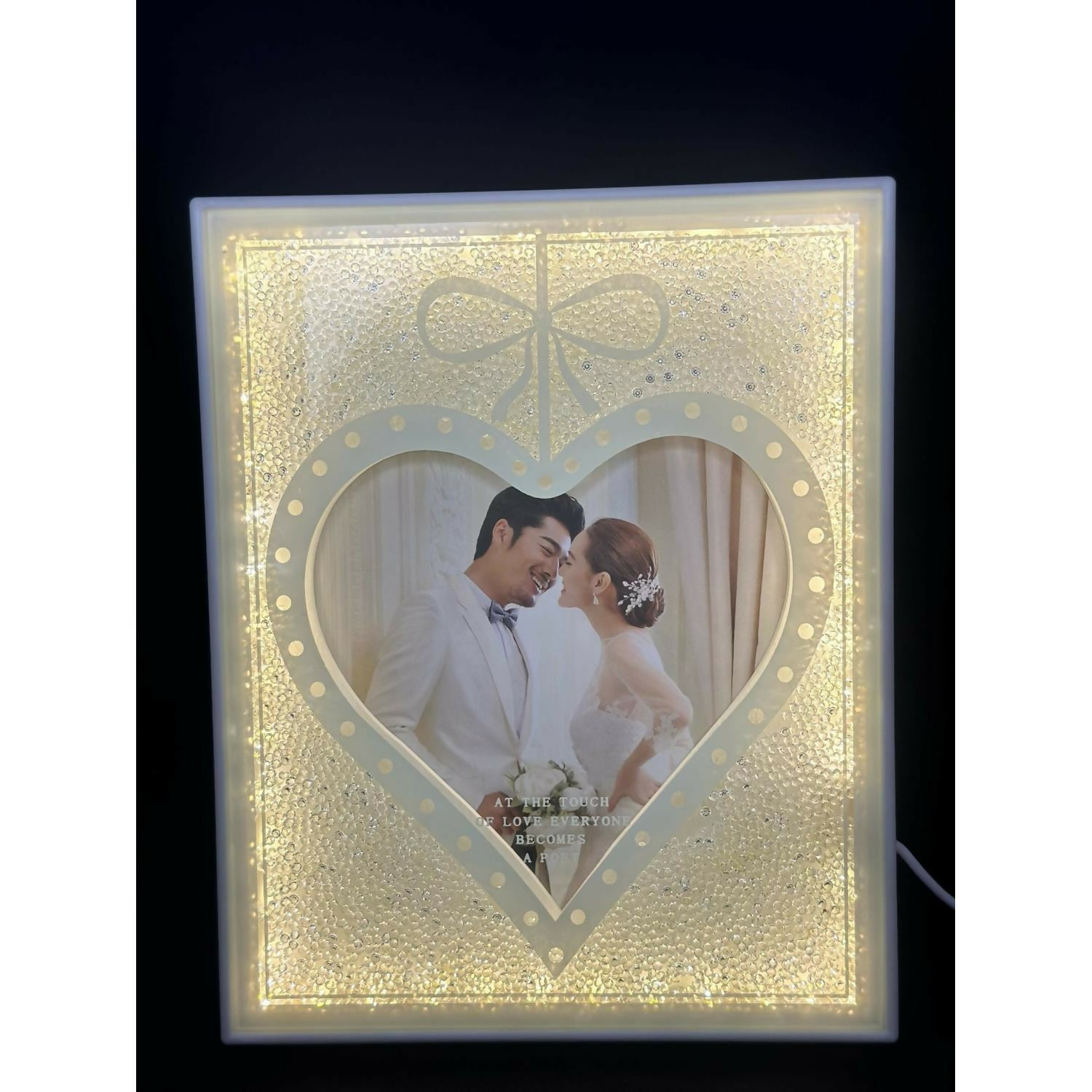 LED photo frame, heart-shaped light frame, glowing picture frame, wedding couple photo décor, illuminated photo display, anniversary gift for couple, romantic picture light, decorative tabletop photo frame, USB LED frame, glowing love frame, bedside picture light, couple keepsake gift, ambient light photo frame, wedding photo decoration