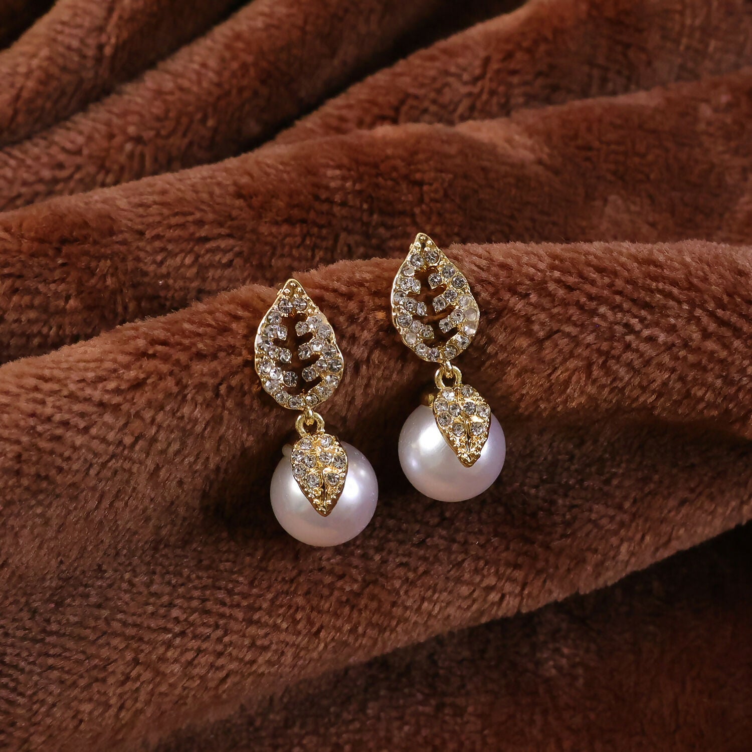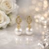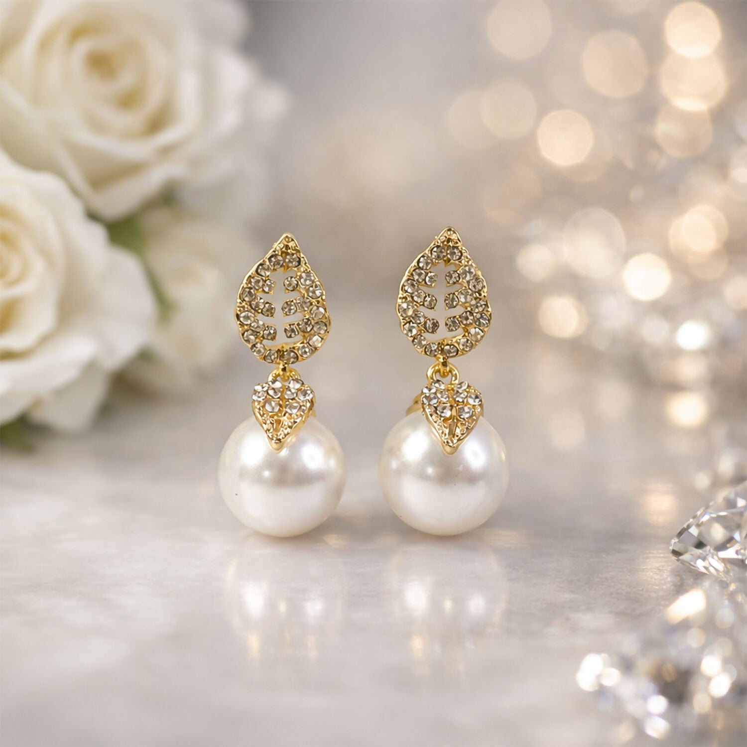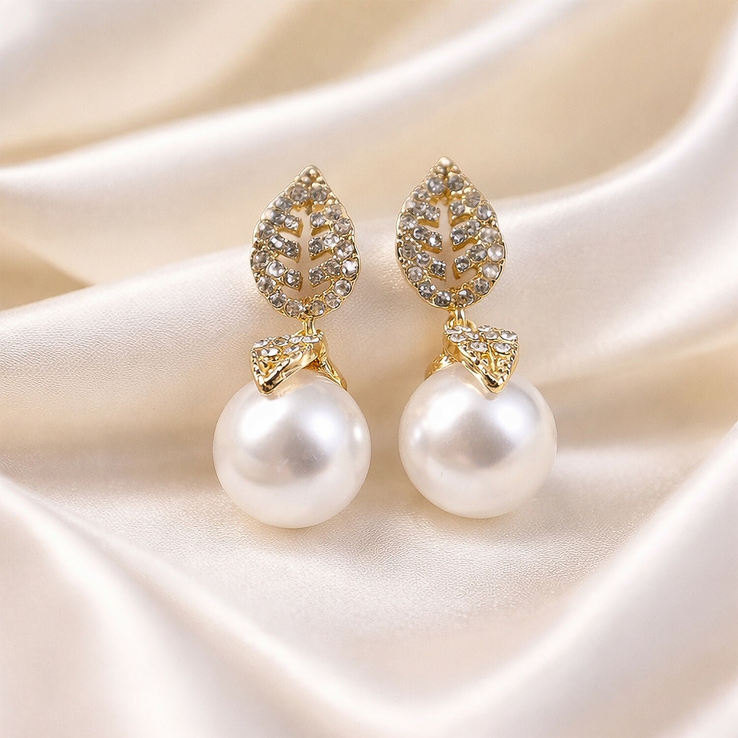 Luxury Korean Style Gold Leaf Pearl Drop Earrings for Women
