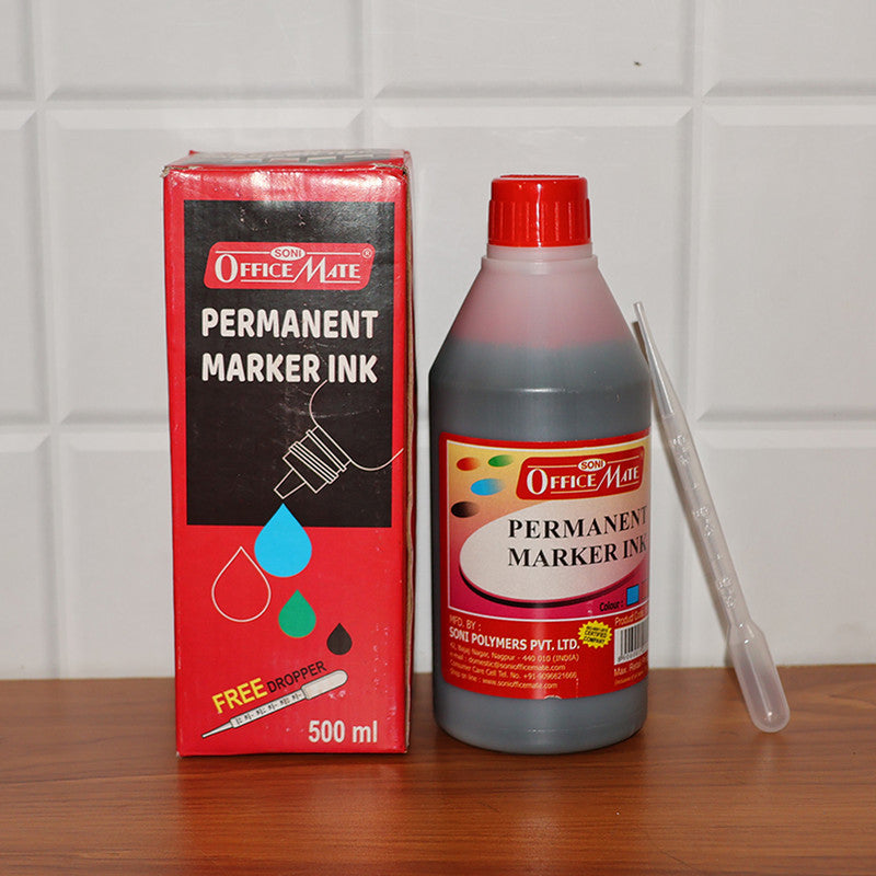 Officemate Permanent Marker Ink Refill – Red Colour (500 ml) with Dropper