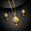 Oval Motif Gold Pendant and Earring Set Elegant Traditional Jewelry Set for Women 251.00 Save:115.00(31%)