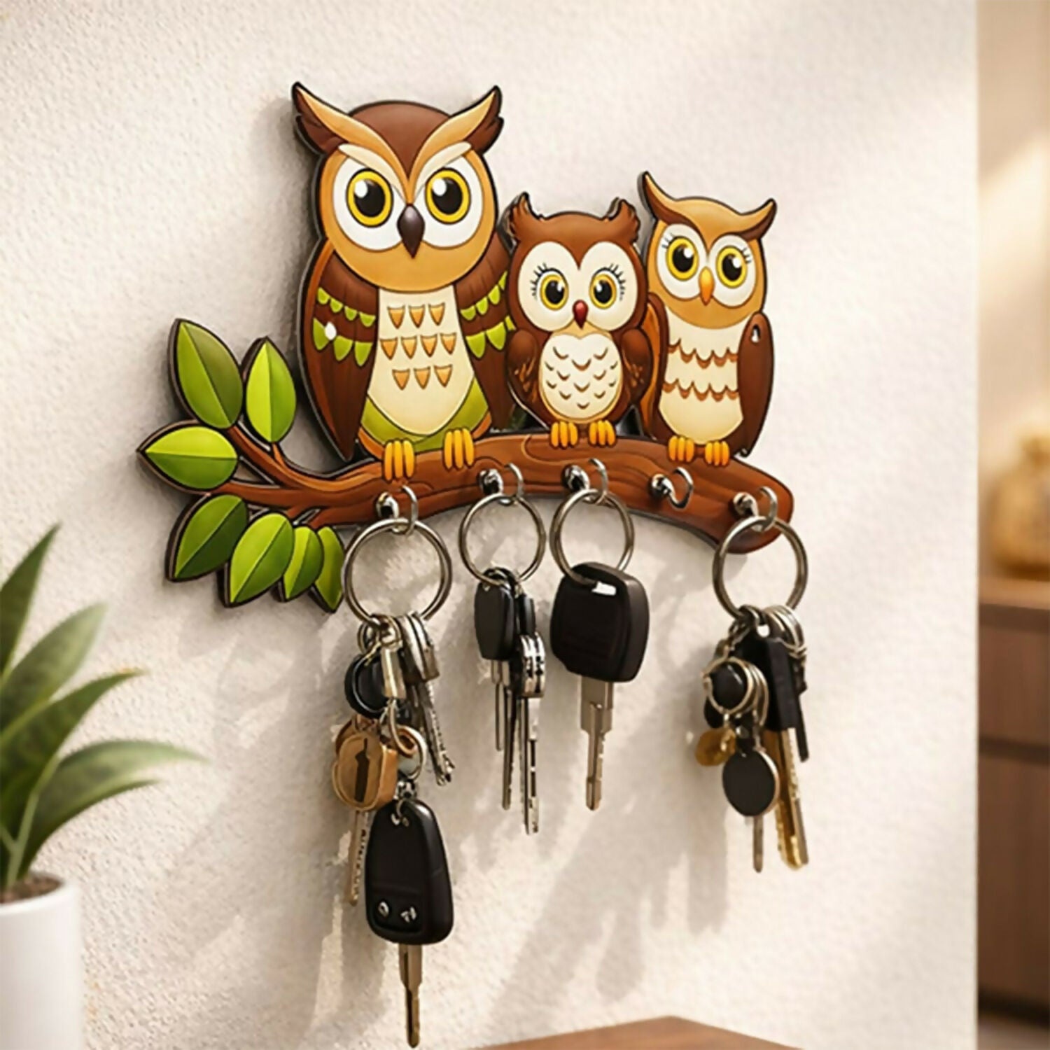 Add charm and functionality to your space with this stylish owl design wooden key holder. Made from high-quality MDF with a smooth printed finish, this wall-mounted key hanger comes with 5 sturdy hooks to keep your keys organized. Perfect for home, office, or entryway décor, it combines utility with a decorative look. Easy to install and durable, this key holder is ideal for daily use while enhancing your wall aesthetics.