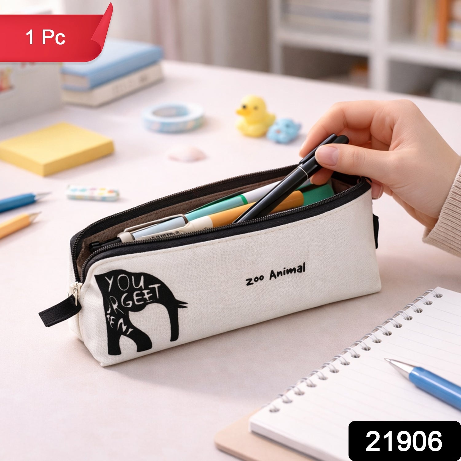 Stylish Canvas Pencil Pouch 1 Pc – Multipurpose Zipper Pen Organizer Case for School Office Stationery Storage Travel Makeup Utility Pouch