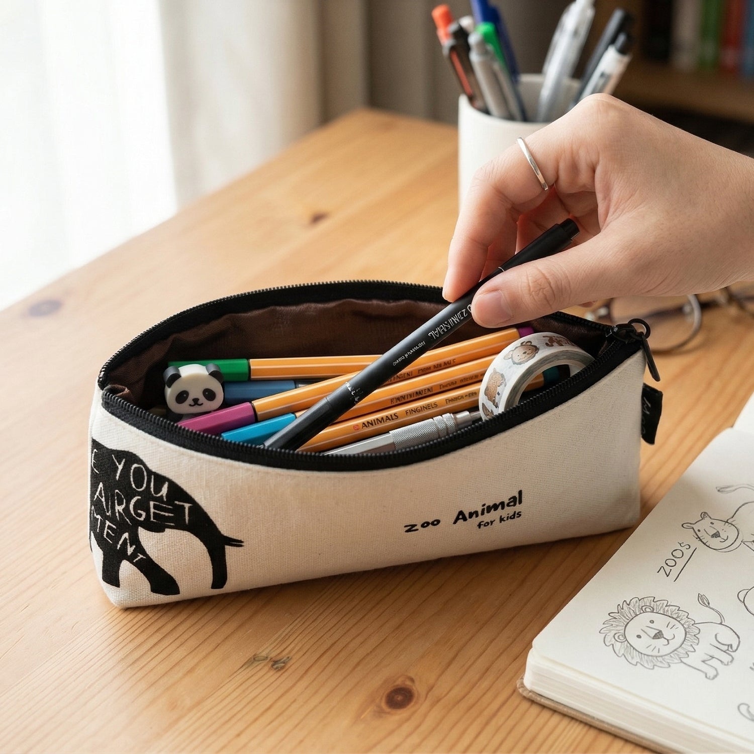 Keep your essentials neatly organized with this stylish and functional pencil pouch designed for everyday convenience. Crafted with a durable fabric exterior and smooth zipper closure, this pouch offers ample space to store pens, pencils, and other small accessories securely. Its compact yet spacious design makes it easy to carry in bags, backpacks, or desks without taking up much space. Ideal for both students and professionals, this versatile organizer can also be used for storing cosmetics, cables, or travel accessories. A practical solution for maintaining tidy and clutter-free organization.