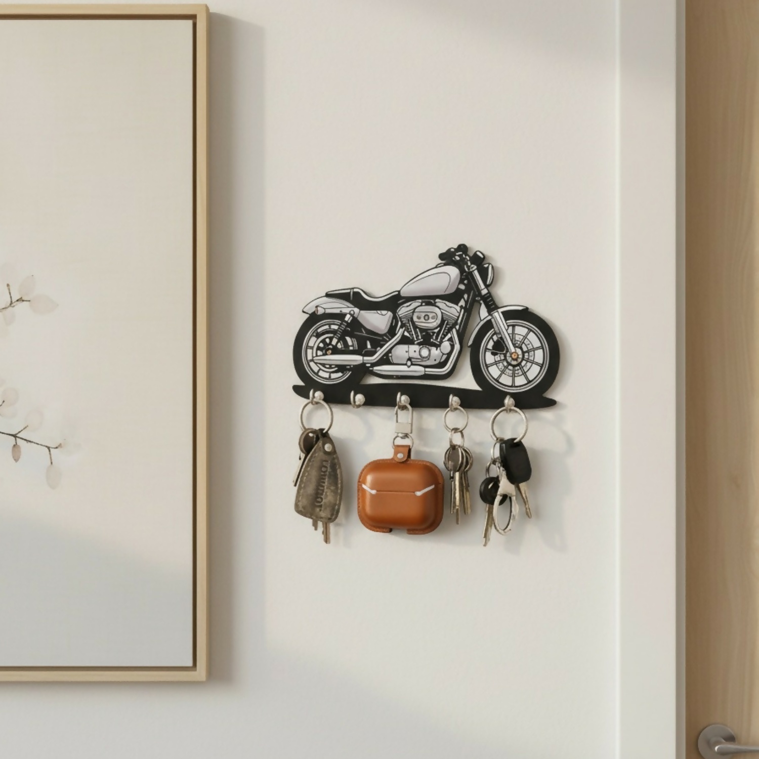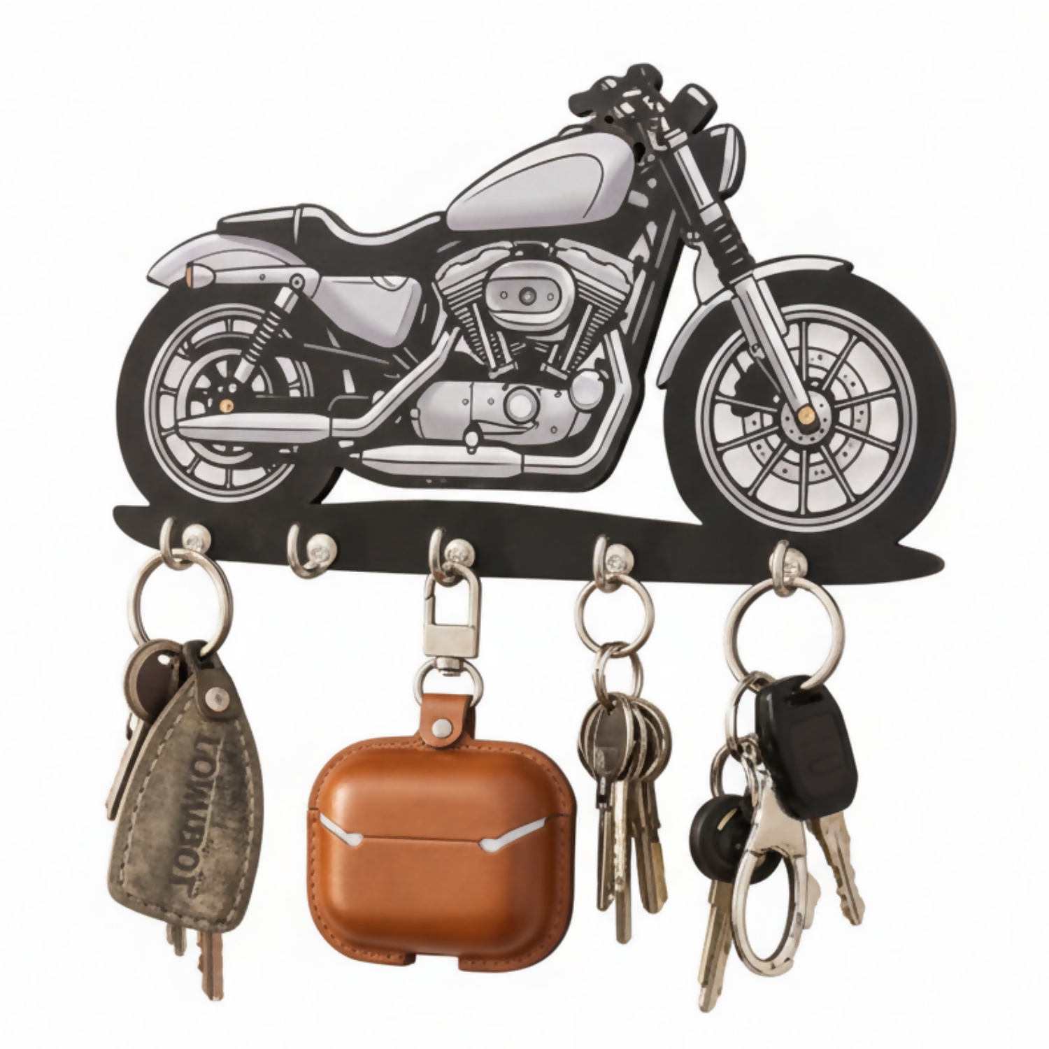 Motorcycle Design Wall Key Holder with 5 Hooks | Decorative Key Stand for Home