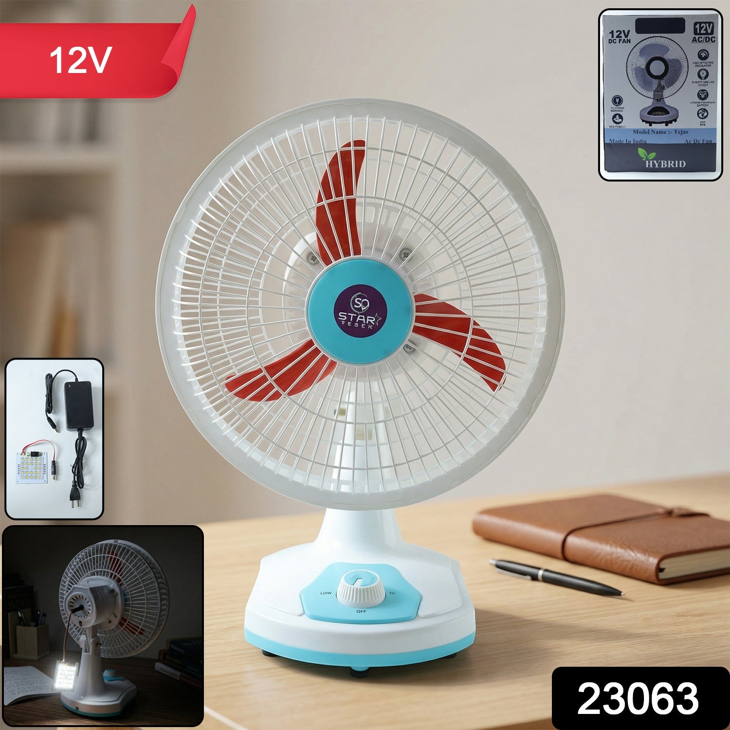 Stay cool and prepared during power outages with this 12V rechargeable table fan designed for convenience and reliable performance. Equipped with dual power support, this fan can operate on both AC and DC, making it ideal for regular use as well as emergency situations. The built-in LED light adds extra functionality, providing illumination during low-light conditions. Its compact and portable design makes it perfect for desks, bedside tables, or travel use, ensuring comfort wherever you go.