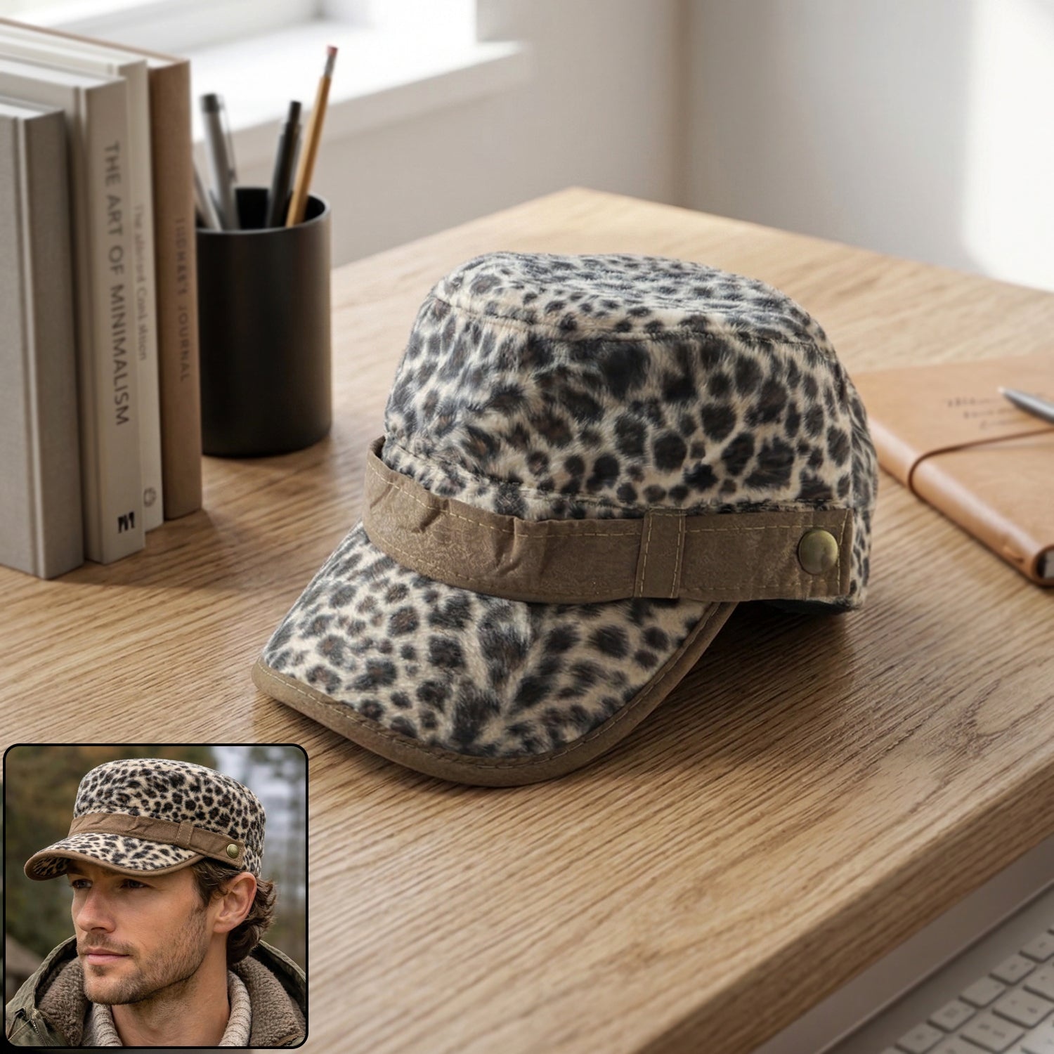 Stylish Leopard Print Military Style Cap (1 Pc)