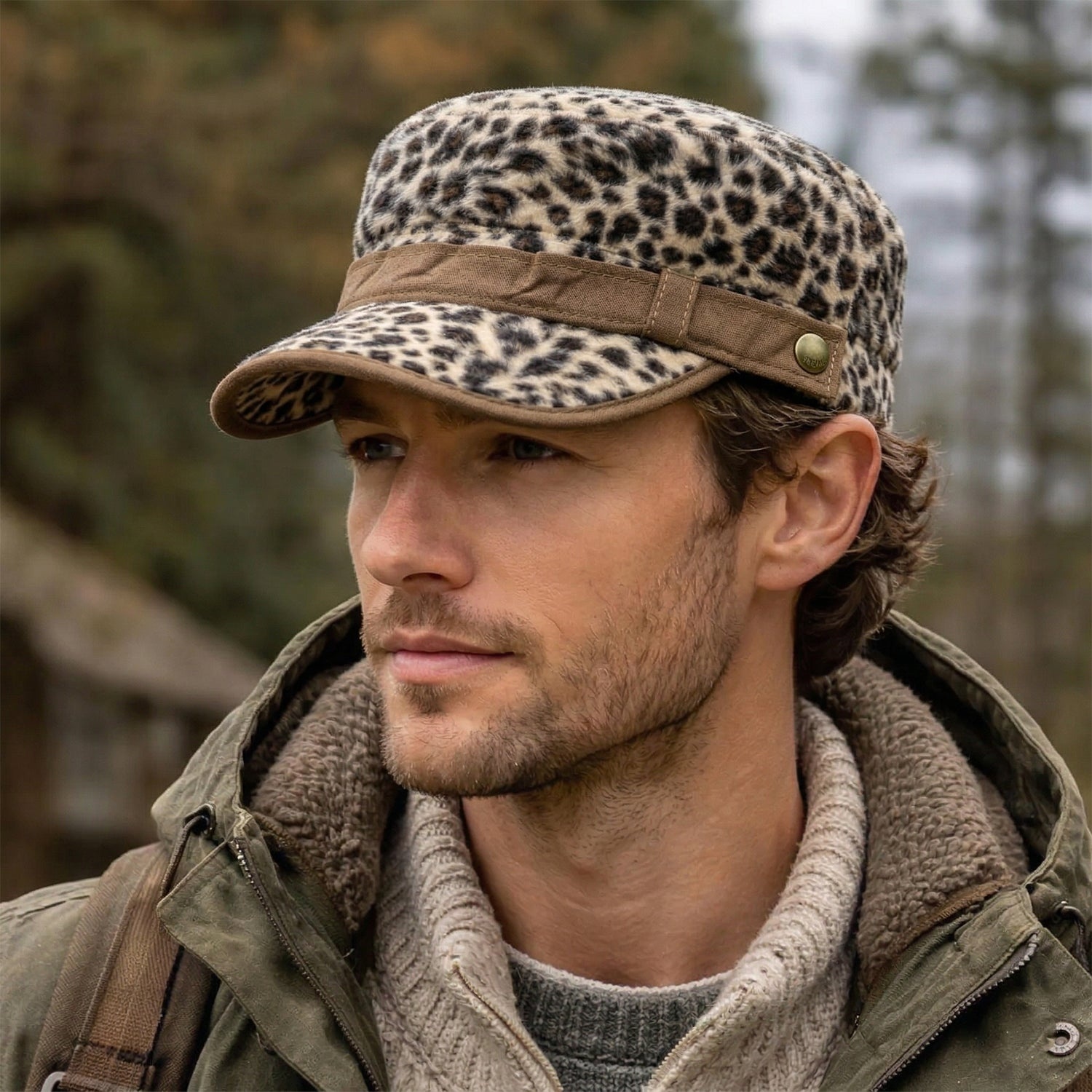 Stylish Leopard Print Military Style Cap for Men & Women 1 Pc – Adjustable Casual Fashion Cap with Curved Brim Outdoor Travel Streetwear Headwear