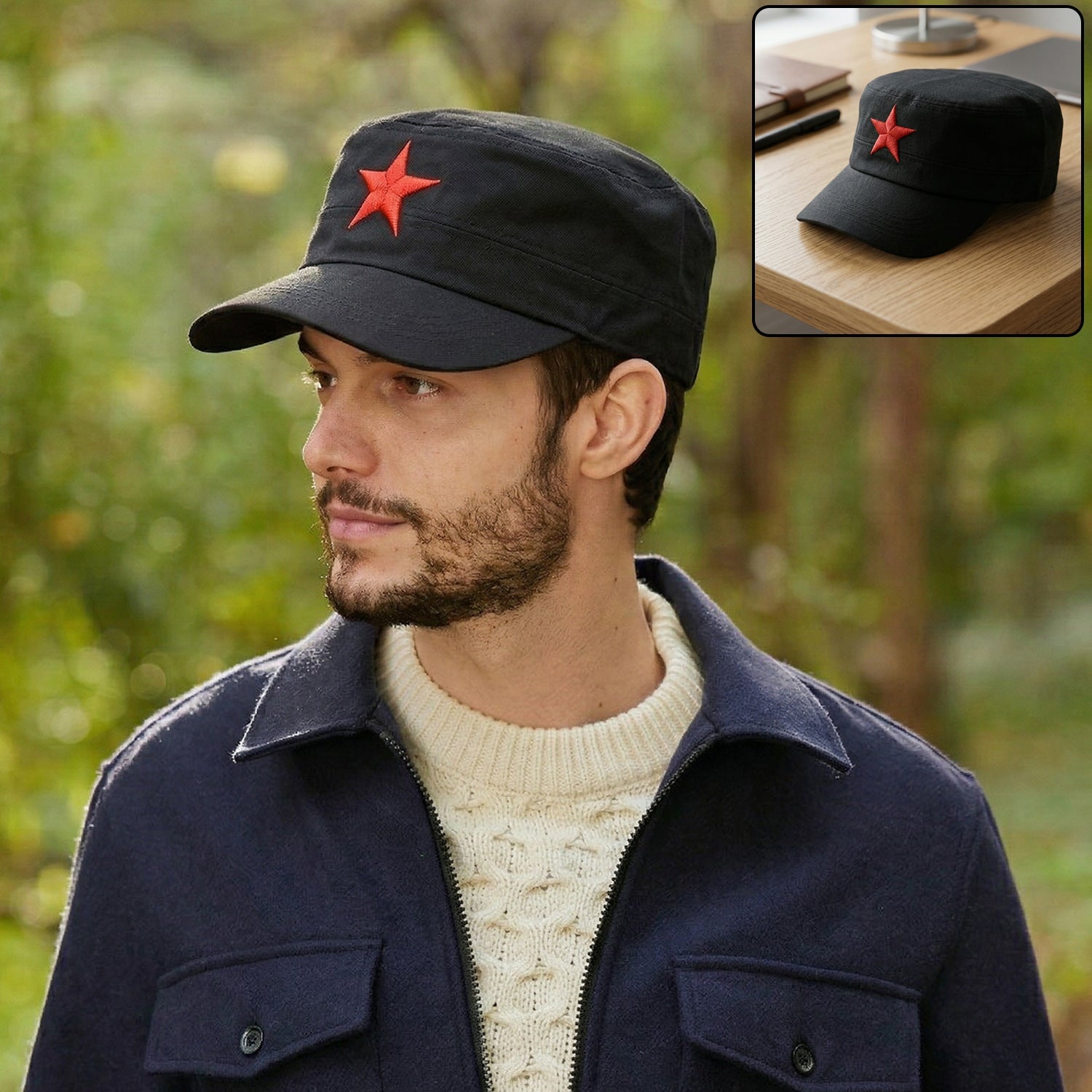 Give your outfit a bold and unique touch with this classic military-style cap featuring a striking star design. Designed with a flat top structure and a comfortable fit, this cap combines style and functionality for everyday wear. The sturdy build and breathable fabric make it suitable for long hours of use without discomfort. Whether you're heading outdoors, traveling, or simply adding a fashionable edge to your look, this cap delivers both comfort and style. A perfect accessory for those who prefer a distinctive and confident appearance.