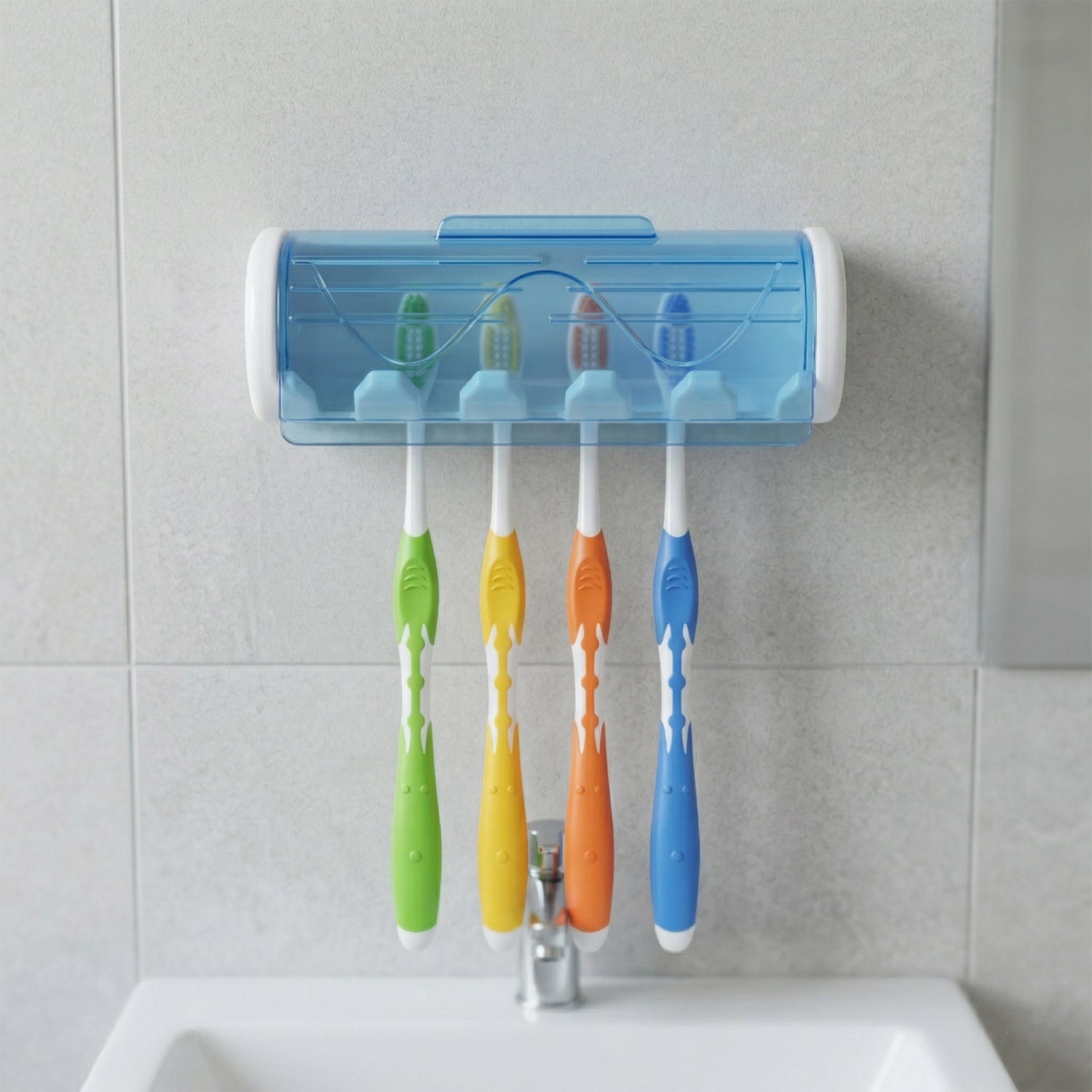 - Protective cover keeps toothbrushes dust-free and hygienic