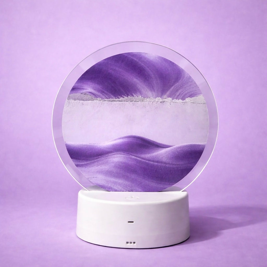 Purple Round Moving Sand Art LED Lamp Decorative Night Light