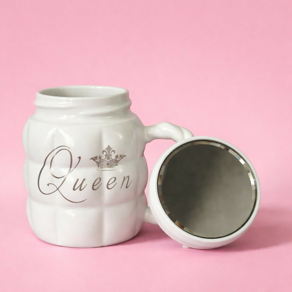 Queen Printed Ceramic Mug with Mirror Base Coffee Cup