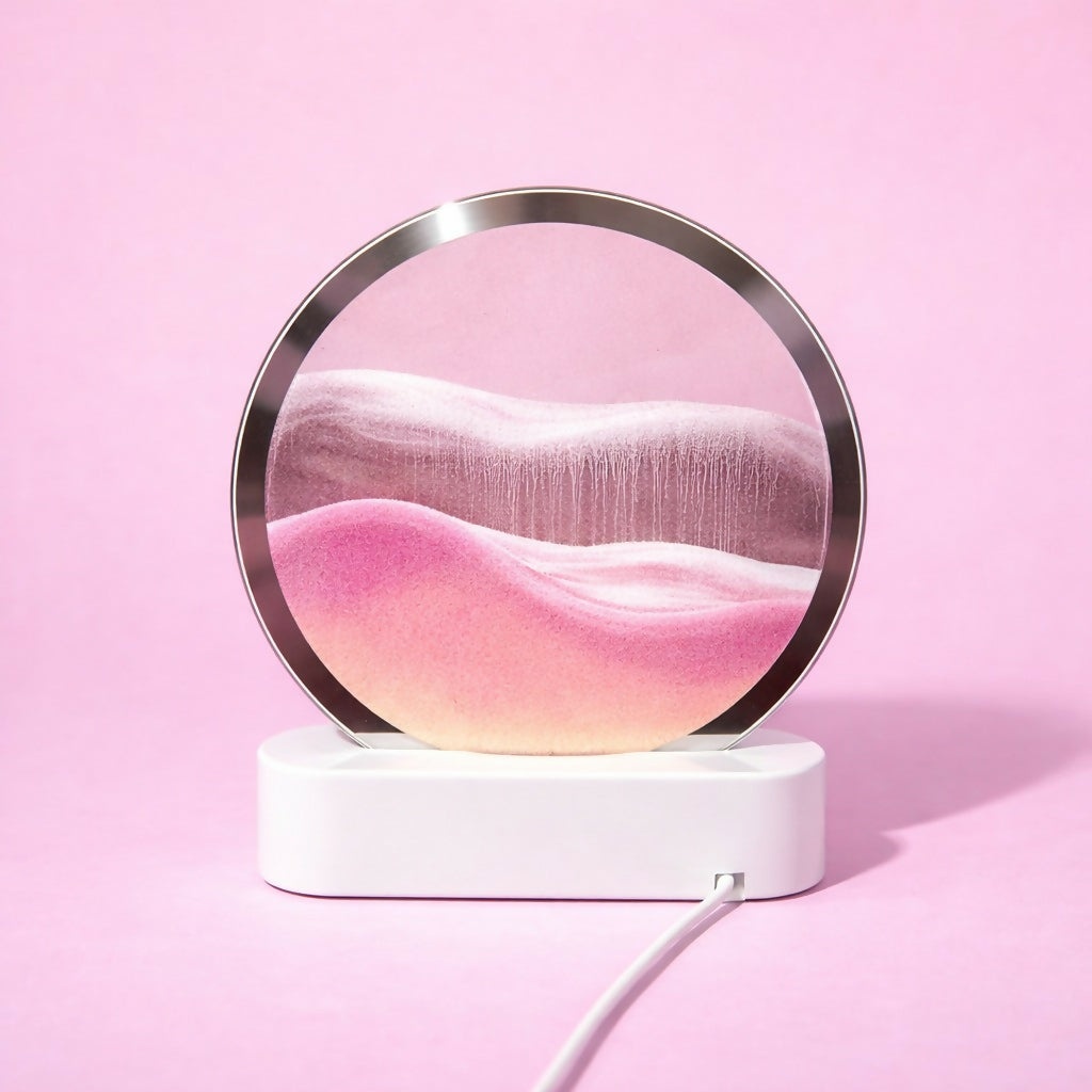 Pink Moving Sand Art LED Lamp Round Decorative Ambient Night Light