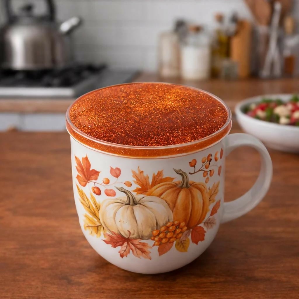 Orange Glitter Resin Cup Lid and Coaster Set for Mug Cover