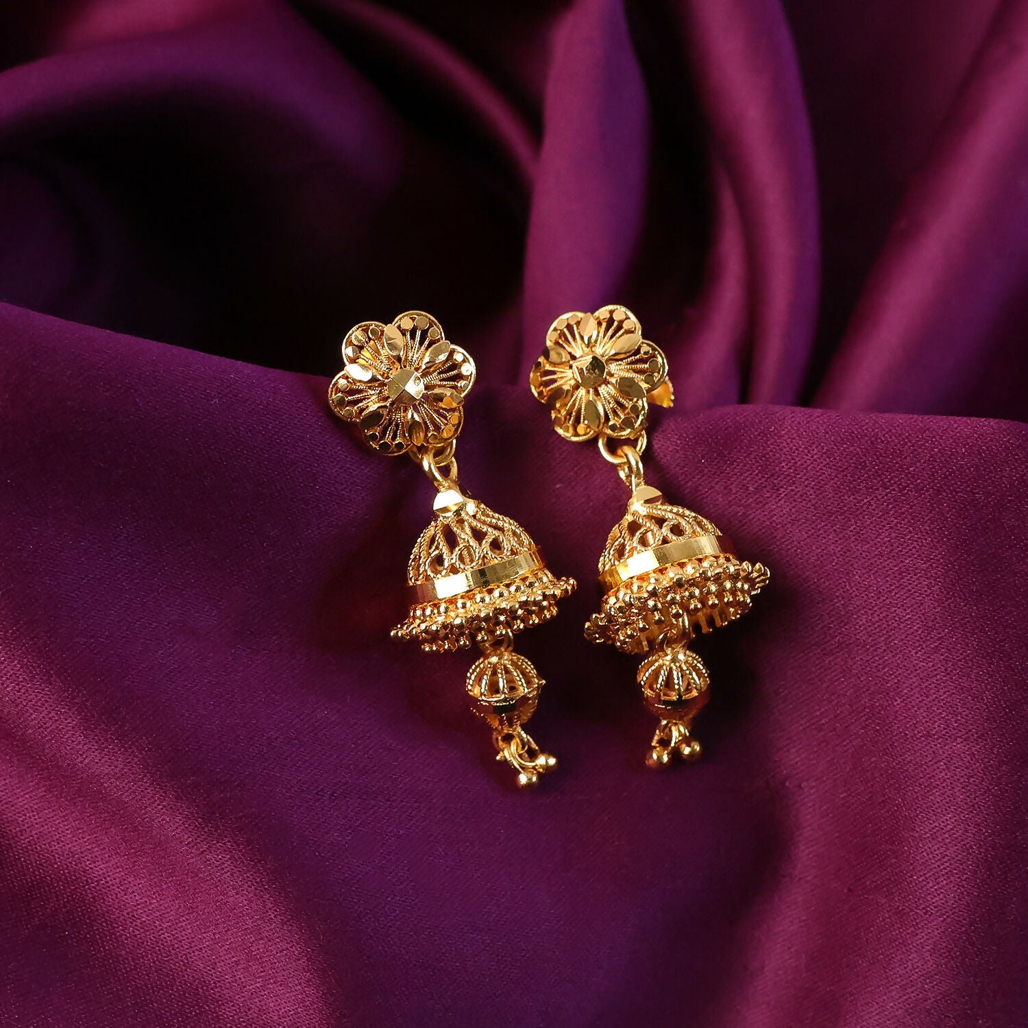 Design: Traditional Jhumka with Floral Motif and Filigree Detailing.