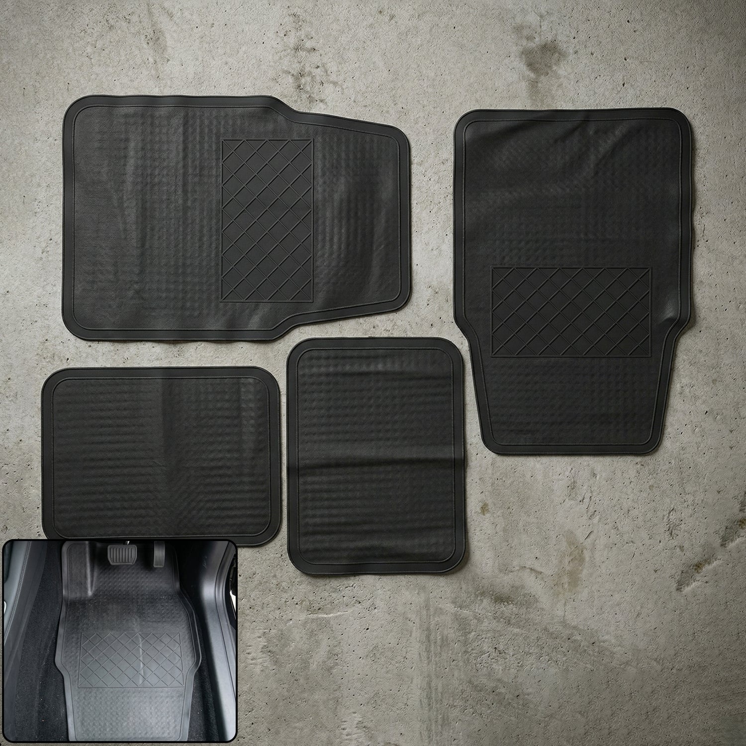 - Complete 4-piece set for full car floor coverage