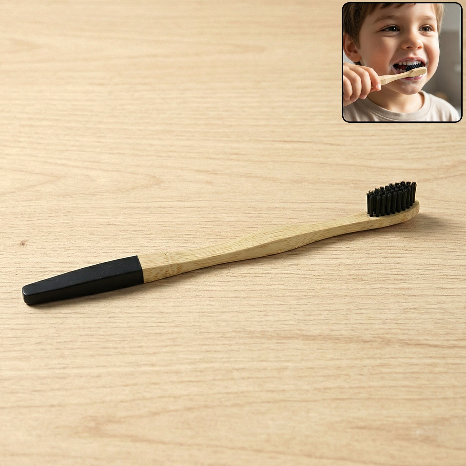 Natural Bamboo Toothbrush with Soft Charcoal Bristles (1 Pc)