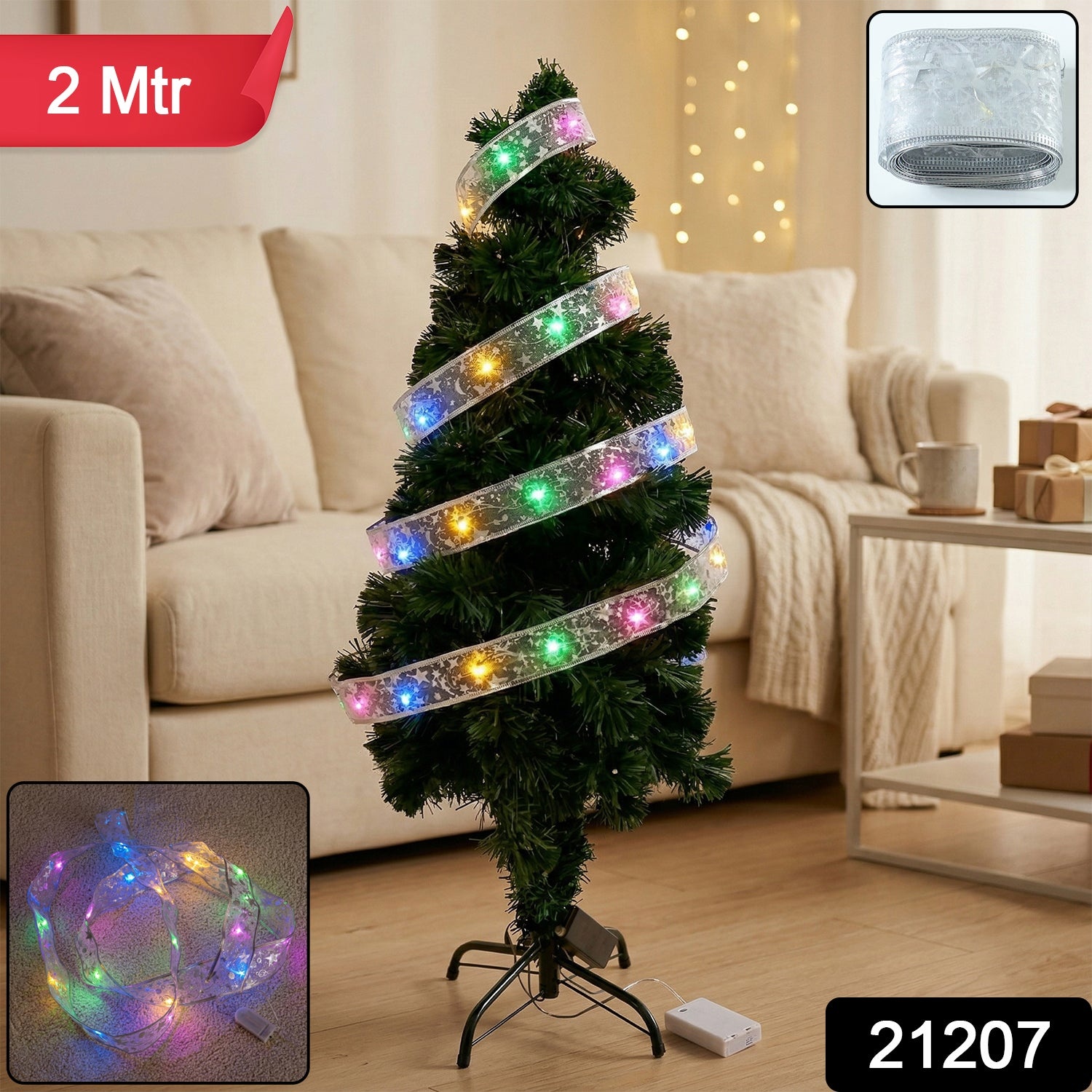 Enhance your festive decorations with this beautifully designed LED ribbon light strip that combines elegance with vibrant illumination. Featuring a flexible ribbon-style design embedded with multicolor LED lights, it wraps easily around trees, railings, walls, or furniture to create a warm and festive ambiance. The soft glowing lights add charm to any space, making it perfect for celebrations, parties, and seasonal decor. Its lightweight and flexible structure allows easy shaping and installation without hassle. A perfect decorative lighting solution to instantly uplift the mood of your home during special occasions.