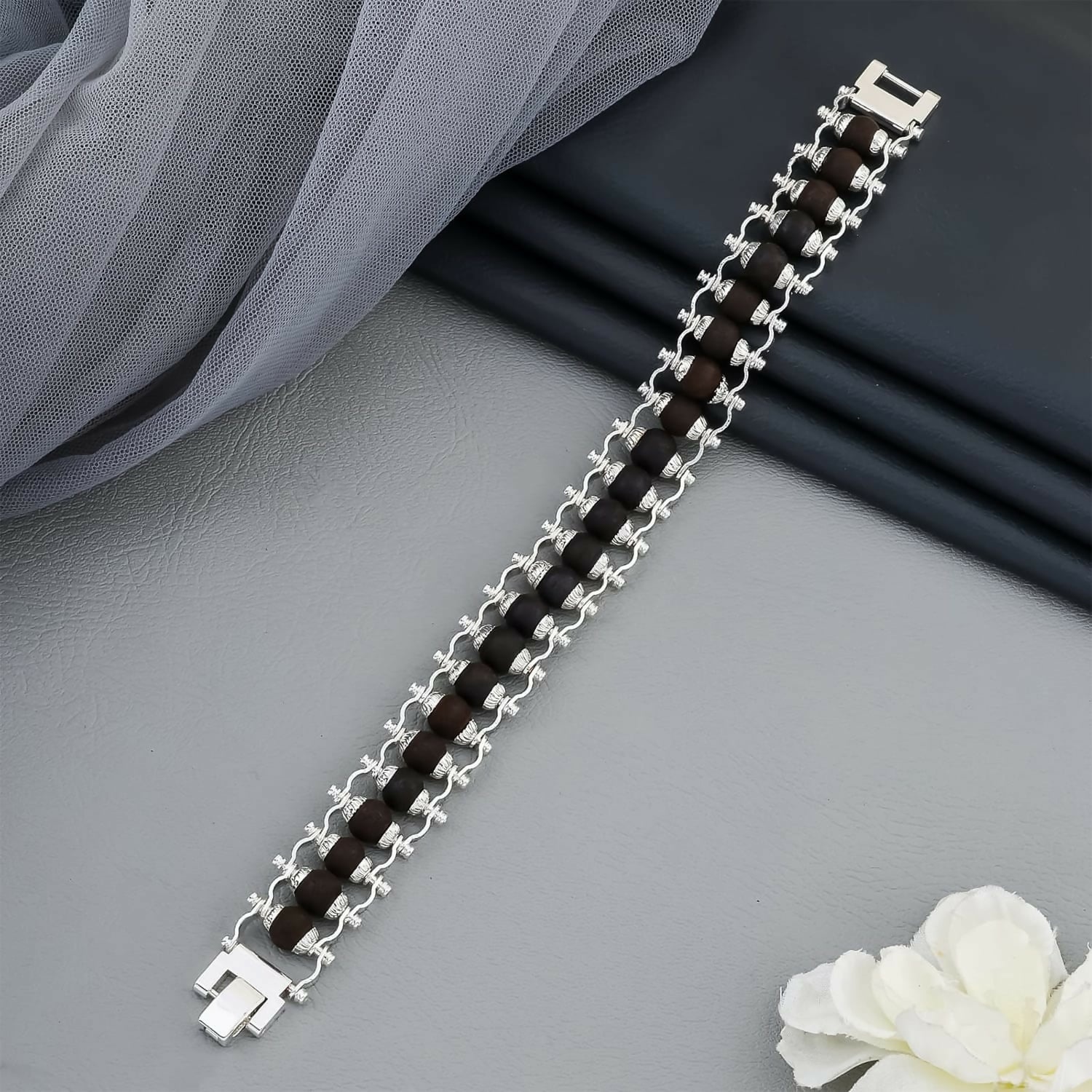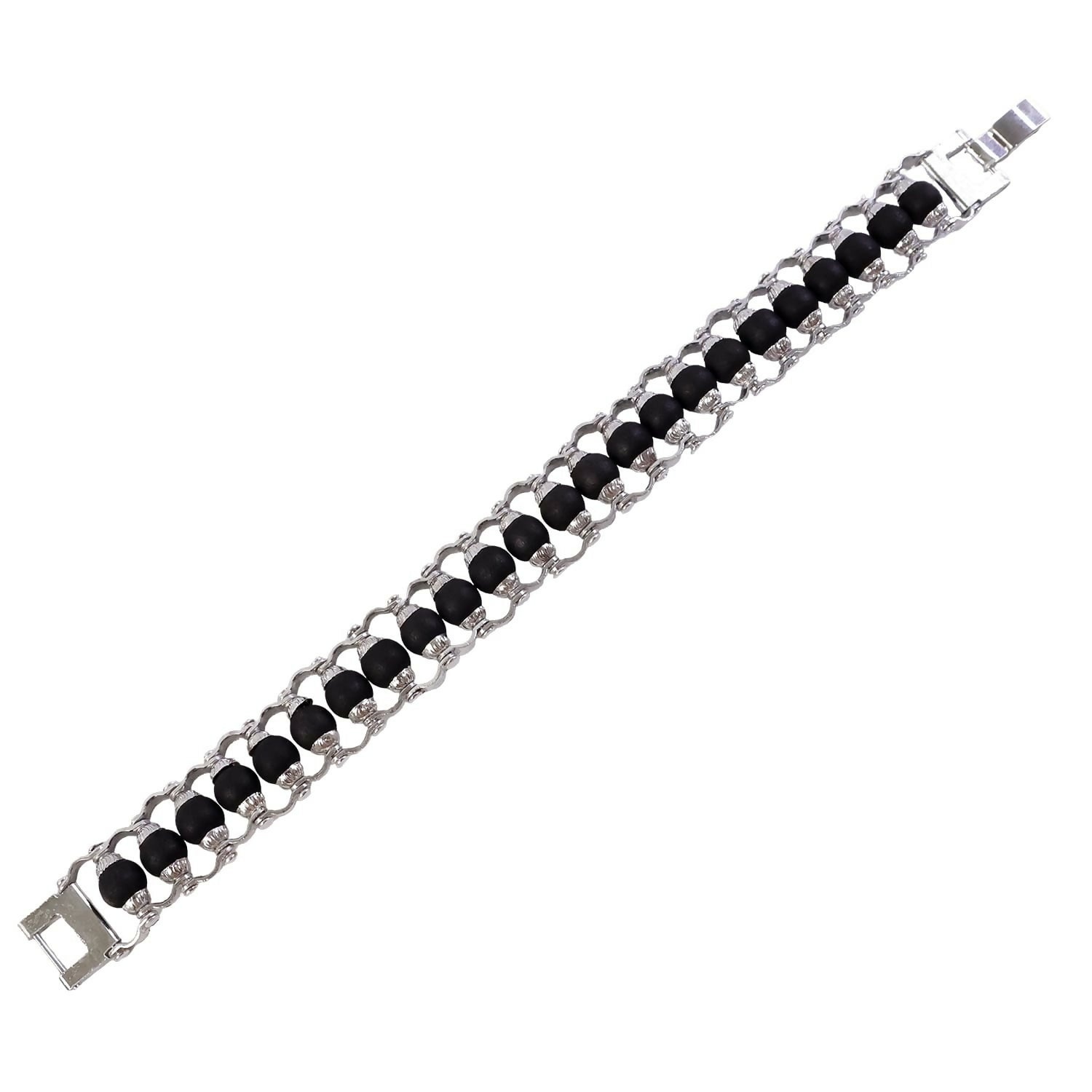 The deep black beads contrast beautifully with the shiny silver framework, giving the bracelet a sophisticated and contemporary appeal. Designed with a sturdy clasp, it ensures a comfortable and secure fit for everyday wear.