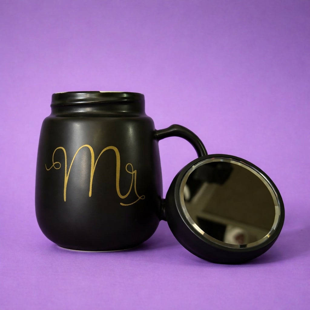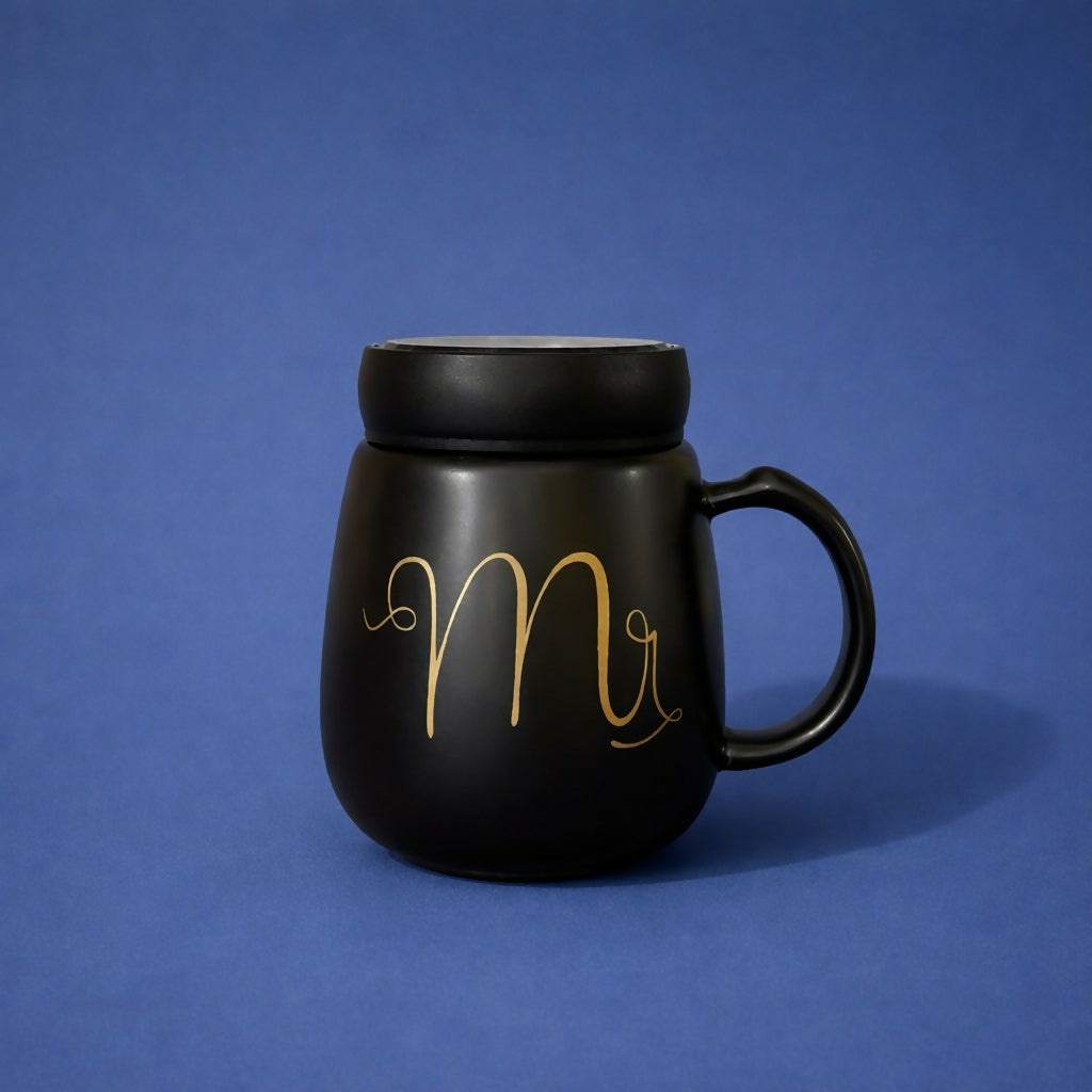 mr mug, ceramic coffee mug, printed mug with lid, stylish tea cup, matte finish mug, coffee cup with lid, gift mug for men, couple mug, modern mug, office mug, tea coffee mug, designer mug, kitchen mug, black mug
