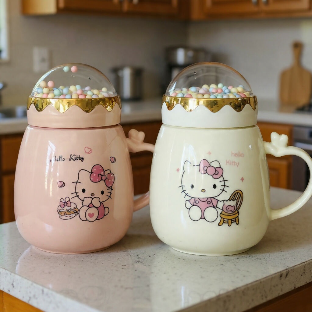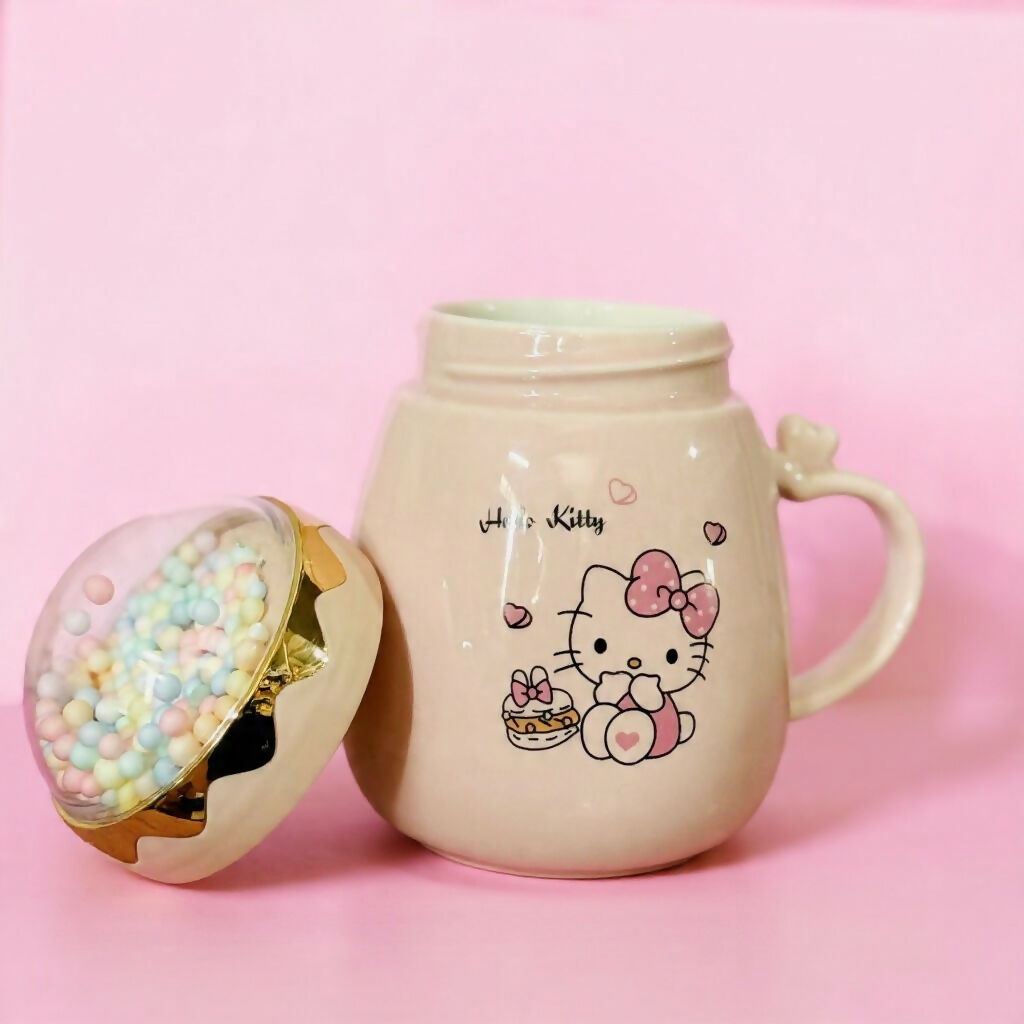 Add a delightful touch to your daily routine with this cute printed ceramic mug featuring a unique dome lid filled with decorative beads. Designed for both style and functionality, this mug keeps your beverage warm while adding a charming aesthetic to your space. Perfect for coffee, tea, milk, or any drink, it is ideal for home, office, or gifting. Its smooth finish, sturdy handle, and eye-catching design make it a great addition to your drinkware collection.