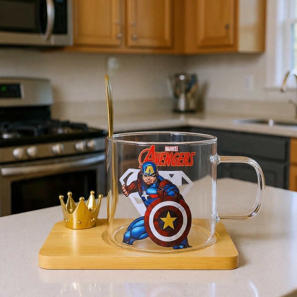 glass mug set, coffee mug with tray, transparent tea cup, wooden tray mug set, mug with spoon set, coffee serving set, stylish glass cup, gift mug set, tea coffee cup set, kitchen drinkware set
