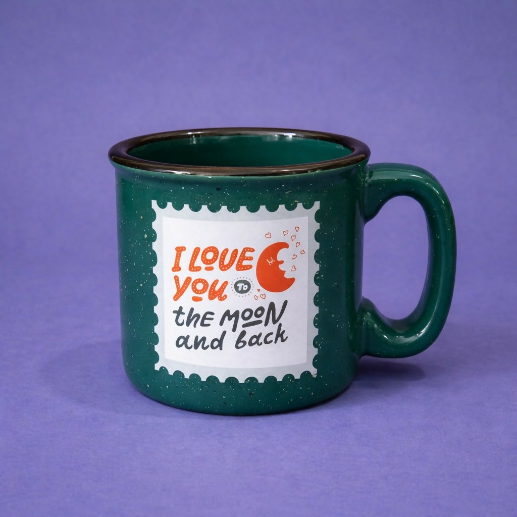 Add a touch of charm to your daily routine with this stylish ceramic coffee mug featuring a romantic themed design with moon and heart elements. Crafted with a smooth glossy finish and sturdy build, this mug is perfect for enjoying coffee, tea, or any beverage. Its unique design makes it a thoughtful gift for loved ones and a beautiful addition to your kitchen or workspace.