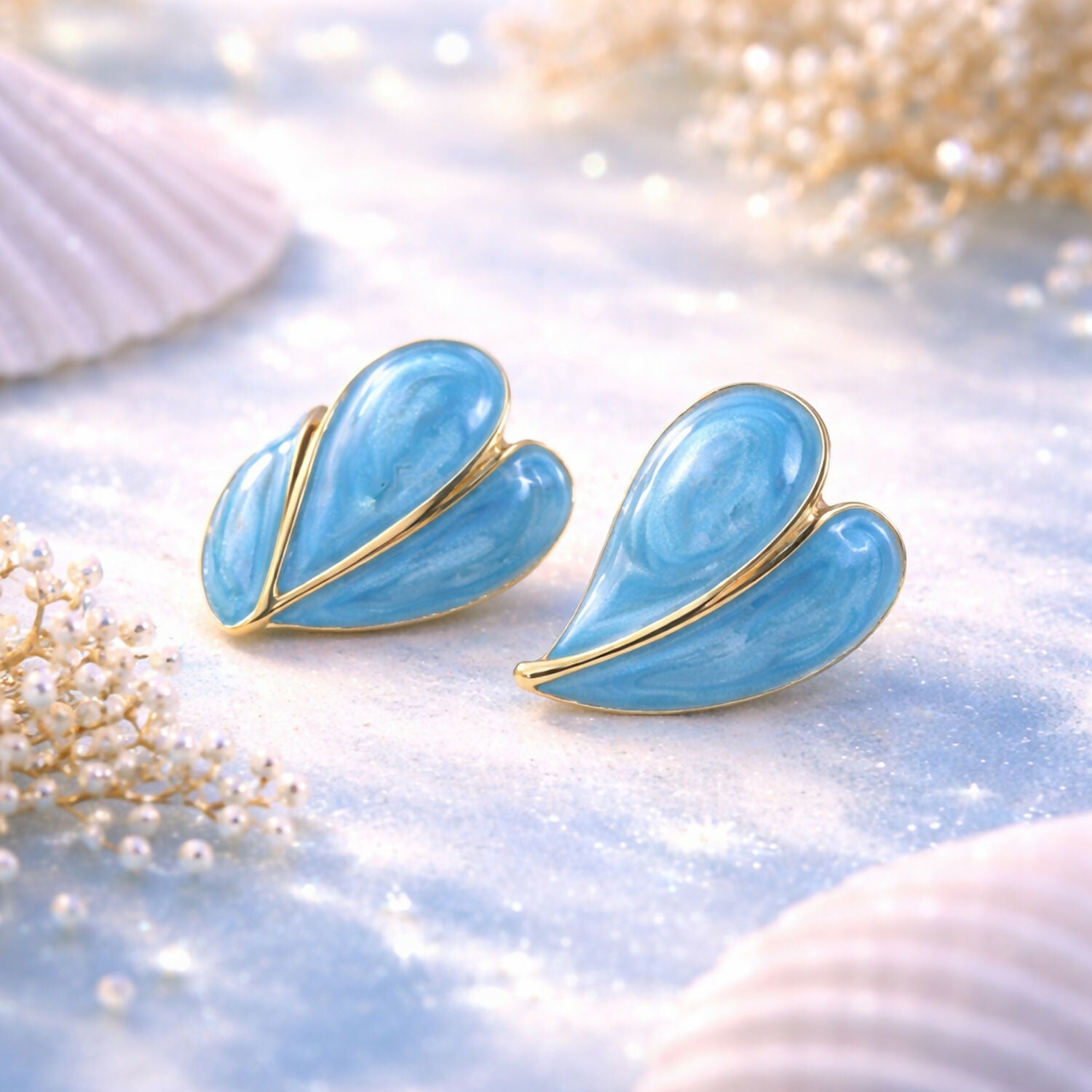 Elevate your style with these stunning sky blue glossy leaf design stud earrings, crafted to bring a fresh and elegant touch to your look. Featuring a smooth, polished finish with a premium gold-toned outline, these earrings combine modern aesthetics with a graceful, nature-inspired design. The soft blue tone adds a refreshing charm, making them perfect for enhancing both casual and dressy outfits.