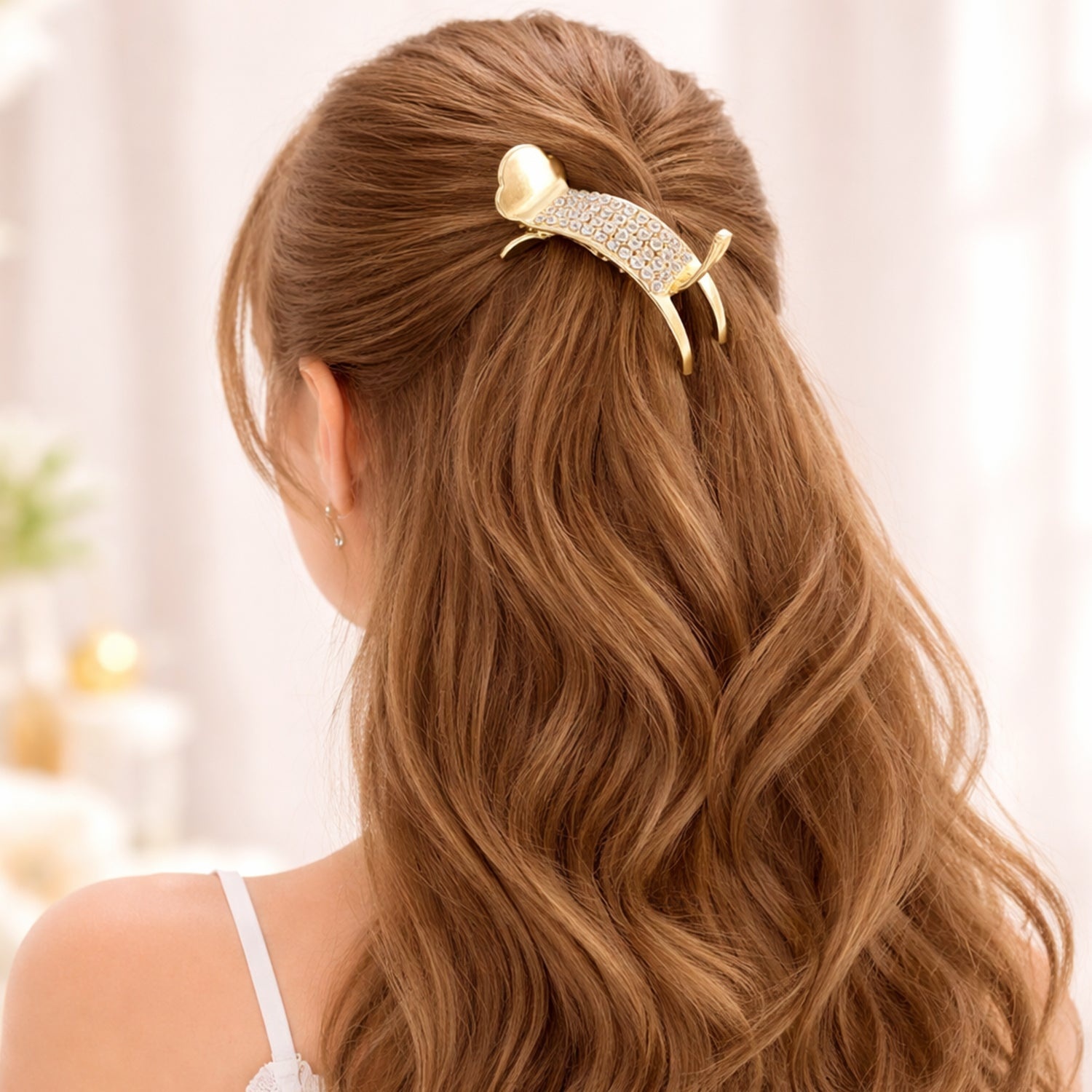 Premium Crystal Studded Hair Claw Clip for Women 1 Pc – Elegant Metallic Finish Strong Grip Designer Hair Clutcher Stylish Party Wear Hair Accessory for Daily & Occasion Use