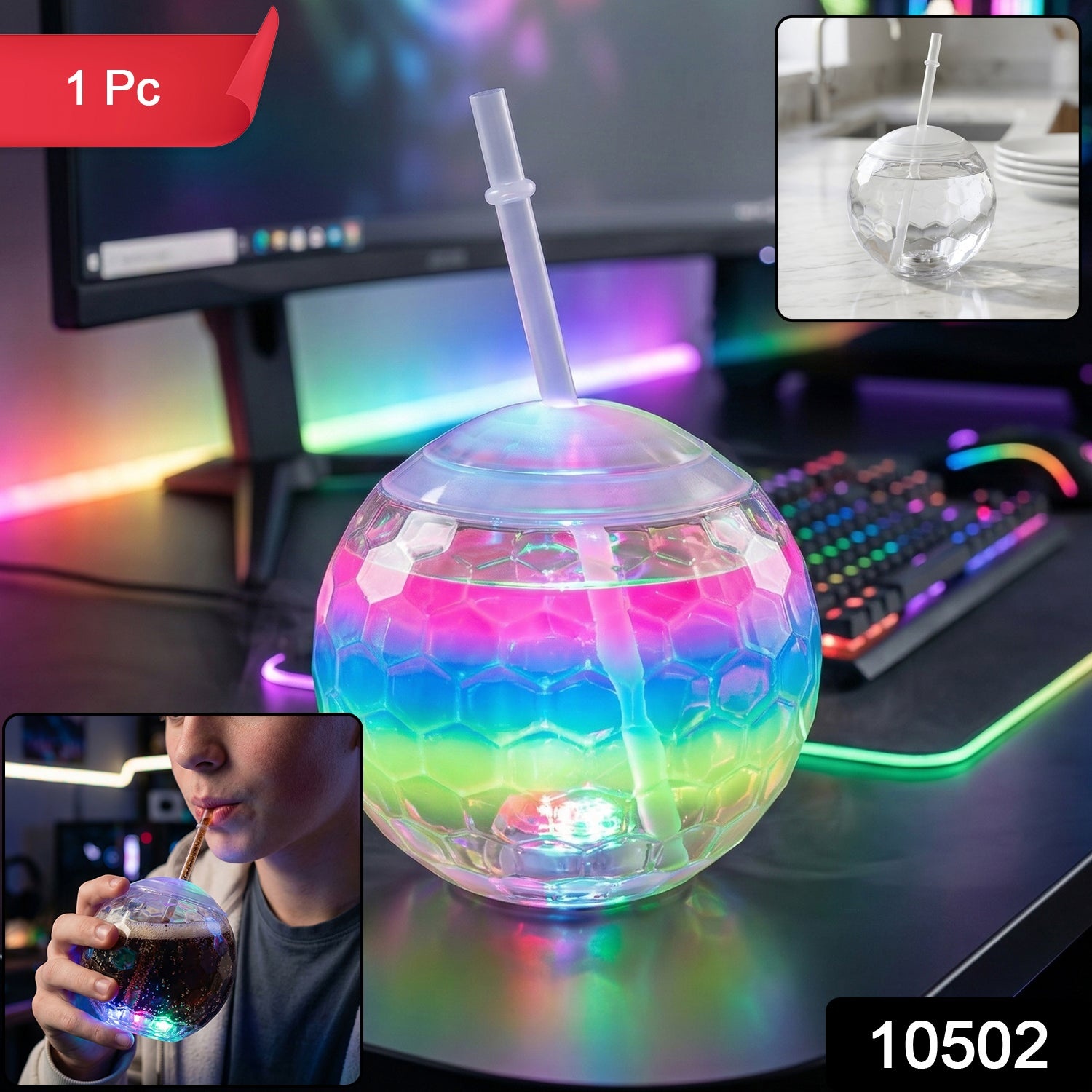 Add a fun and vibrant touch to your drinks with this LED glow cup designed to create a stunning visual experience. Featuring colorful light effects, this cup enhances the look of any beverage, making it perfect for parties, gatherings, or everyday fun use. The built-in LED lights illuminate the cup beautifully, creating a glowing effect that stands out in dim lighting. With a secure lid and straw, it ensures convenient and spill-free sipping. Ideal for both kids and adults, this cup combines style and functionality for an exciting drinking experience.
