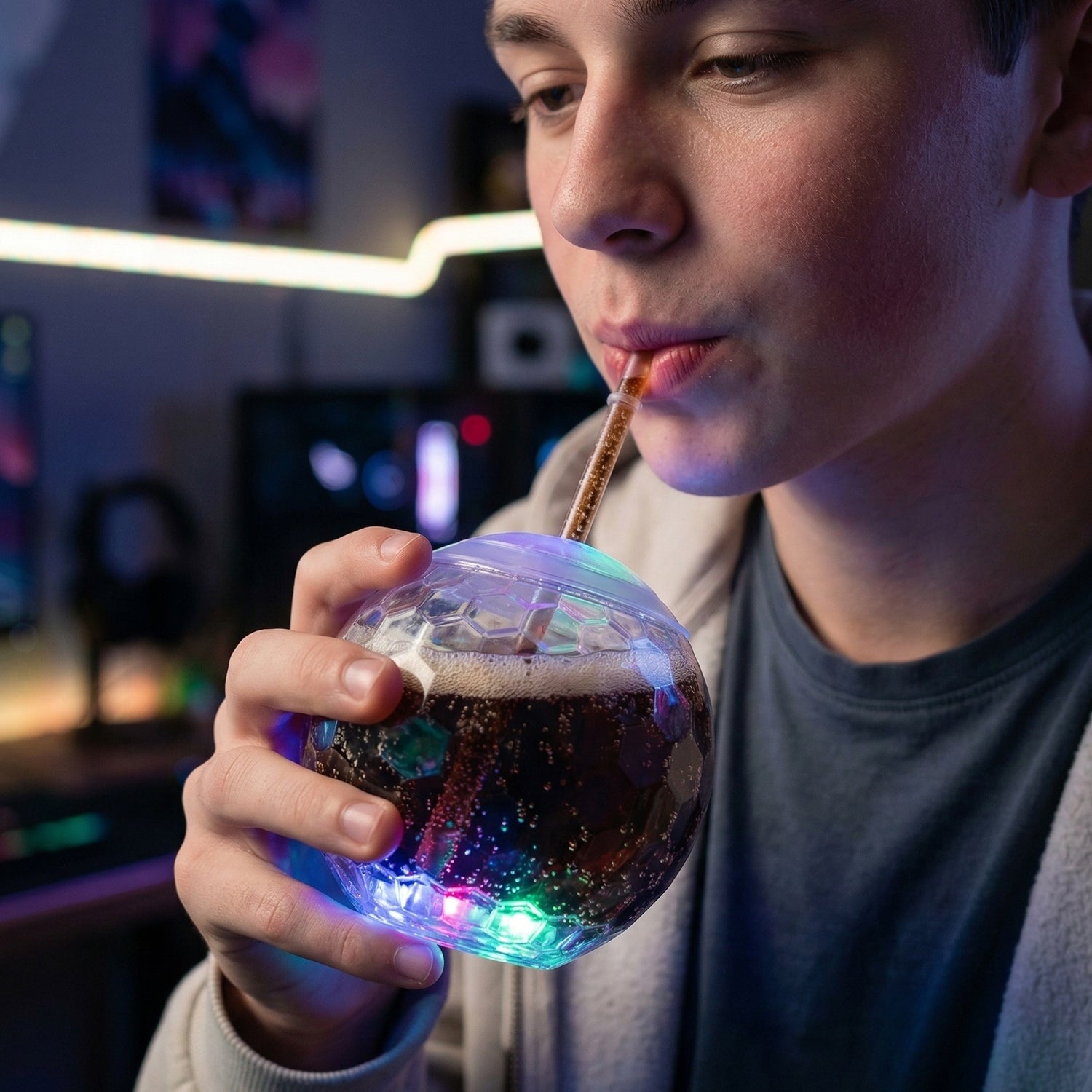 - Design: Light-Up Cup with Lid & Straw