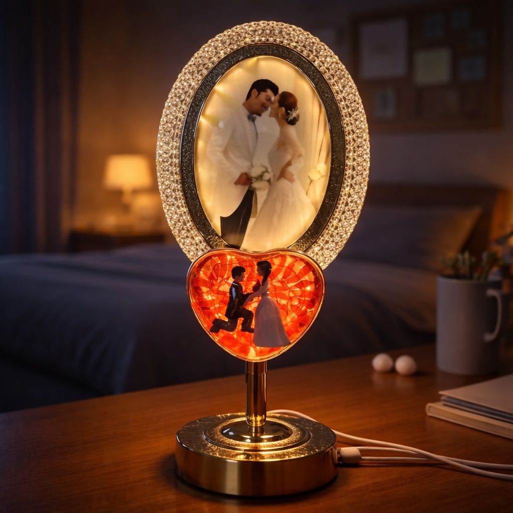 led photo frame lamp, romantic couple lamp, bedroom night lamp, decorative table lamp, couple gift lamp, led desk light, heart shape lamp, ambient light decor, gift for couples, anniversary gift lamp, wedding gift lamp, usb powered lamp, night light decor, home decor lamp, aesthetic desk lamp